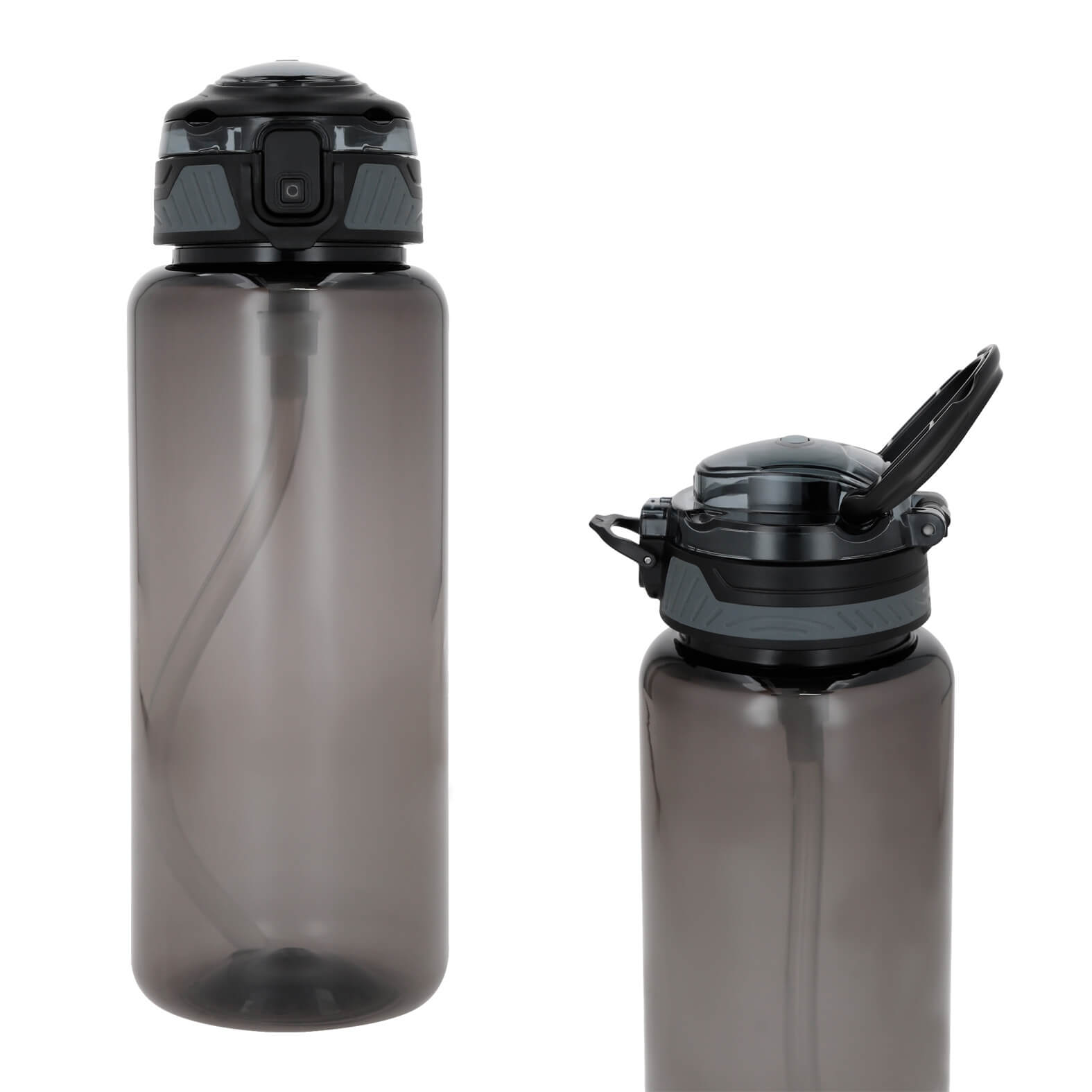 cilindro de plástico con tapa enroscable, broche de seguridad, popote retractil y asa. (el stock de la base se maneja por separado). medidas del empaque de la base: 32 piezas por caja.