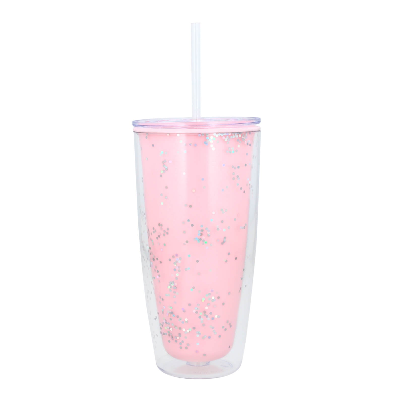 vaso con doble pared de plástico, tapa enroscable y popote.