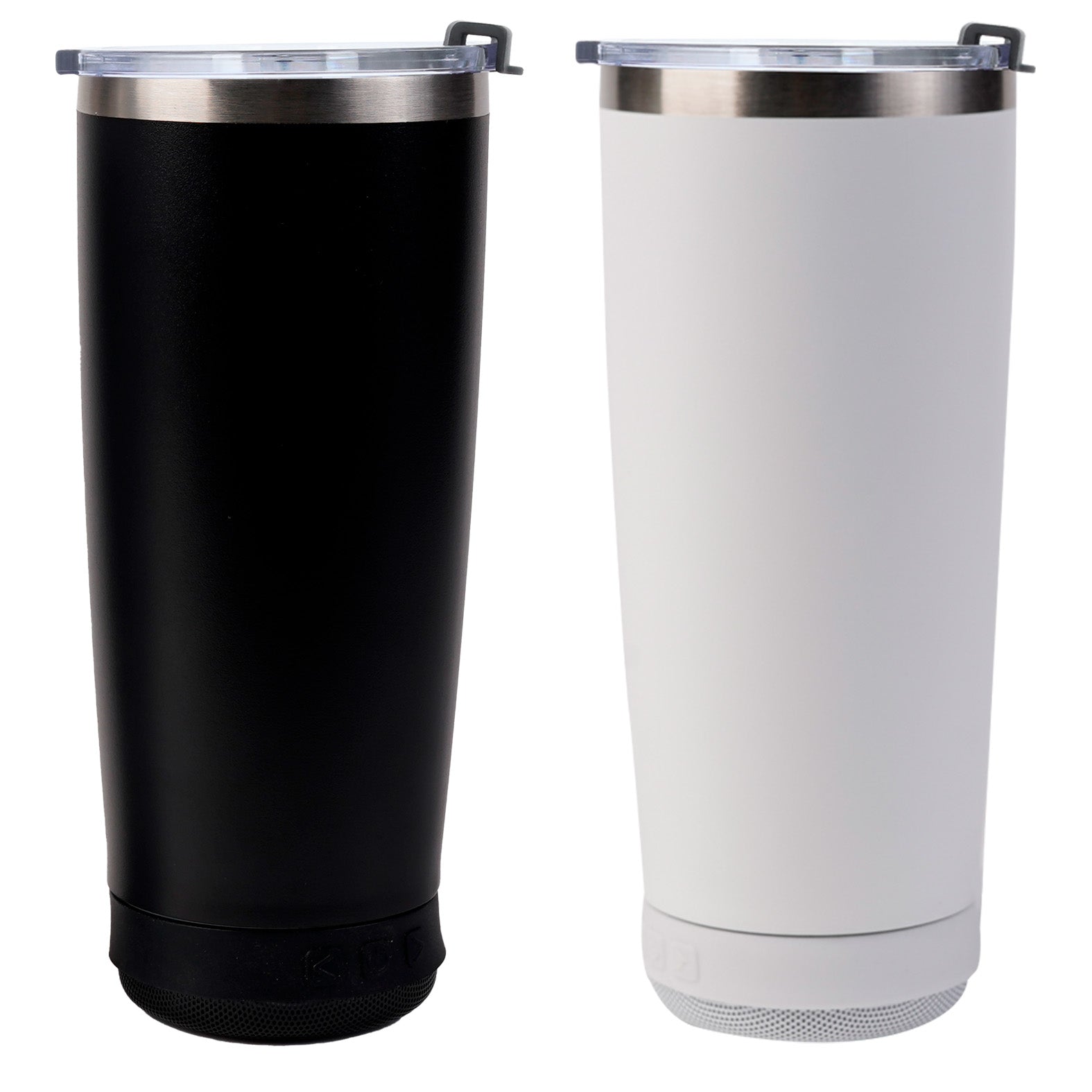 termo aislado al vacío con doble pared de acero inoxidable, acabado plastic painting, equipado con bocina bluetooth que cuenta con controles de volumen, botón de reproducción, efectos de luz y puerto para tarjeta tf. incluye cable tipo c. la bocina es removible de la base del termo.