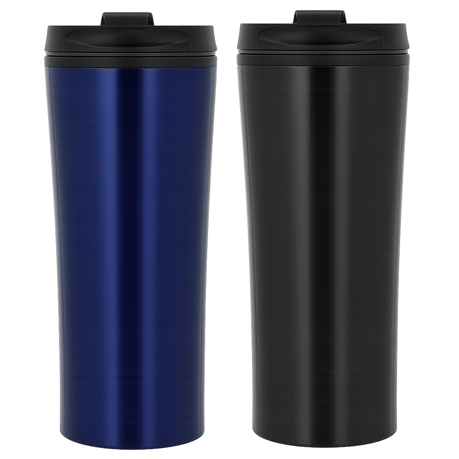 termo de doble pared con interior de plástico, tapa enroscable y válvula de seguridad.