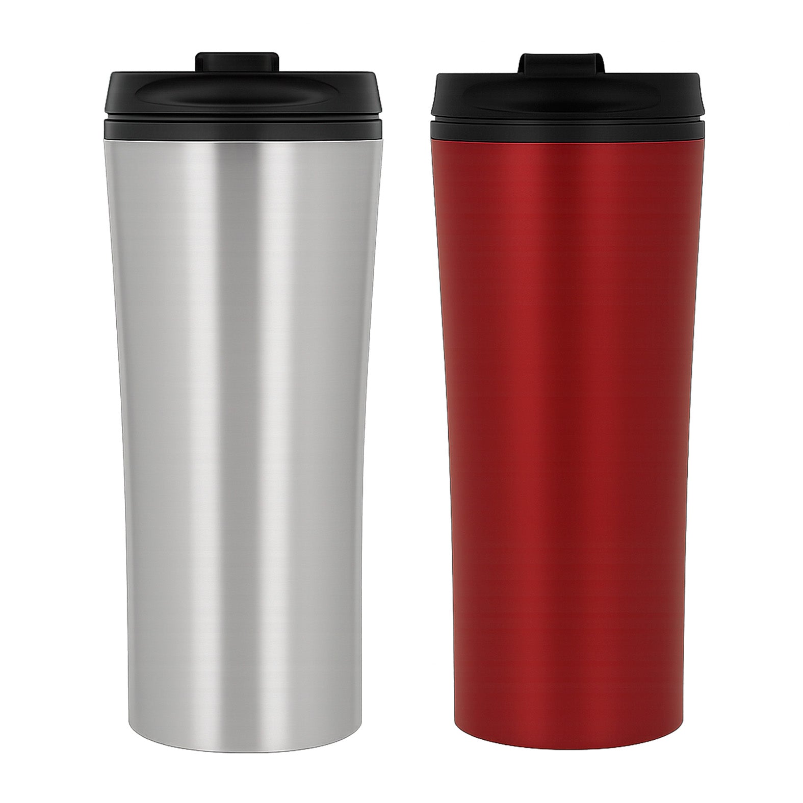 termo de doble pared con interior de plástico, tapa enroscable y válvula de seguridad.