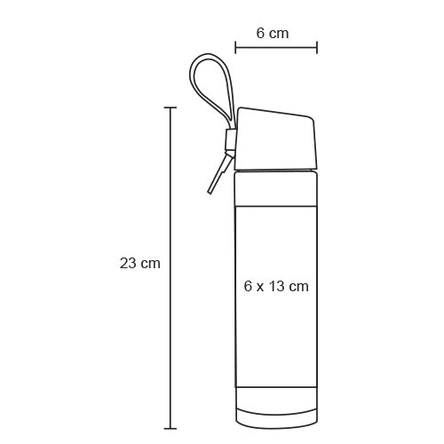 termo de acero inoxidable con acabado mate y correa para sujetar.