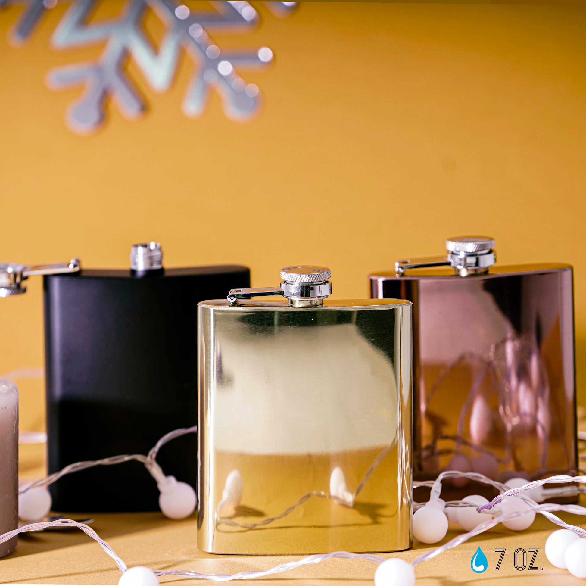 licorera de bolsillo de acero inoxidable con tapa enroscable.