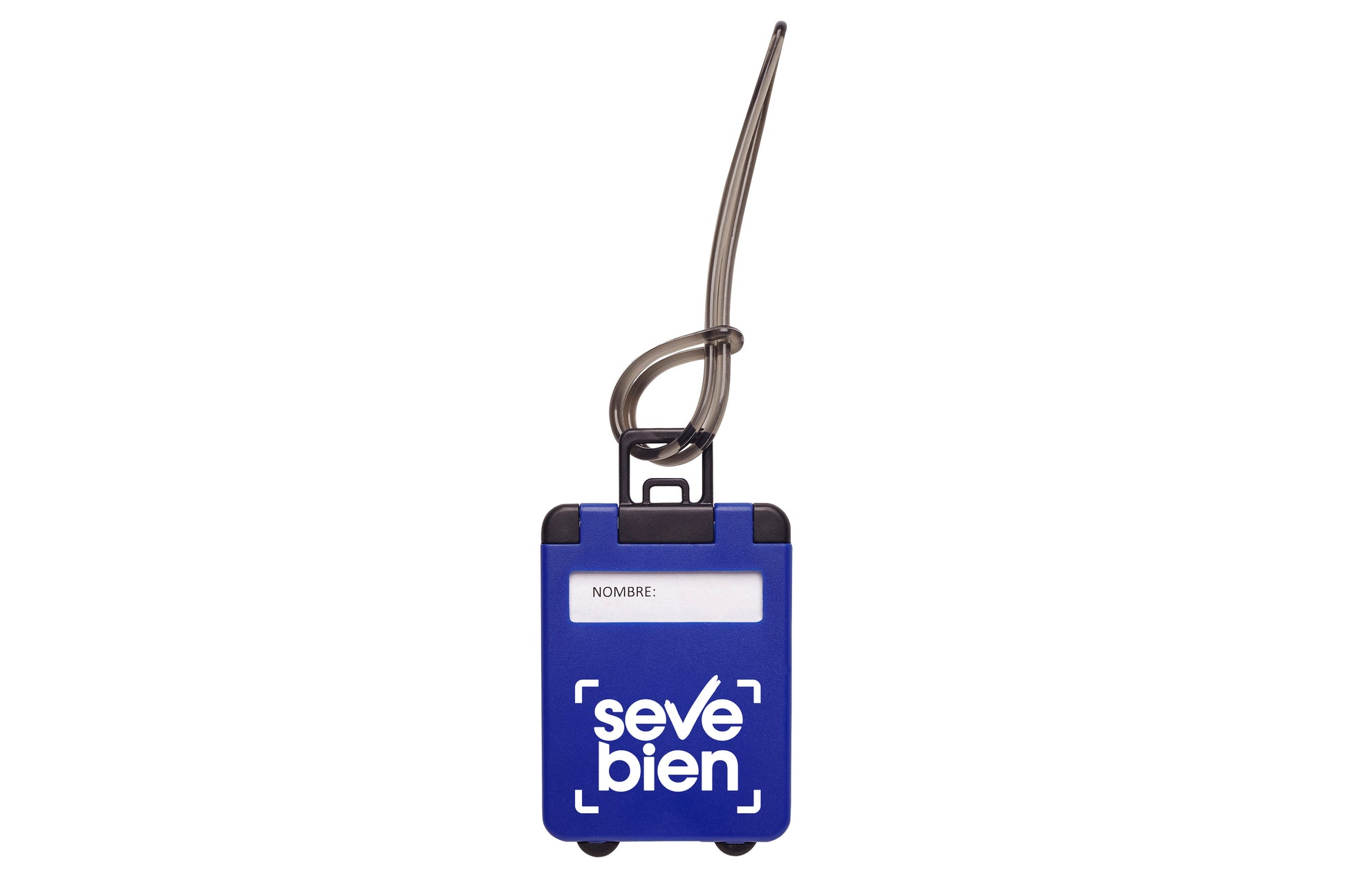 5,4 x 9 cm. plástico. identificador en forma de valija / maleta. cuenta con etiqueta para datos personales. lazo de plástico para colgar en la manija del equipaje.