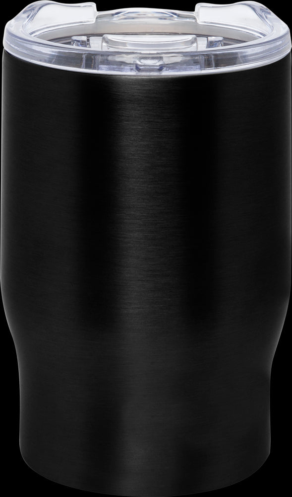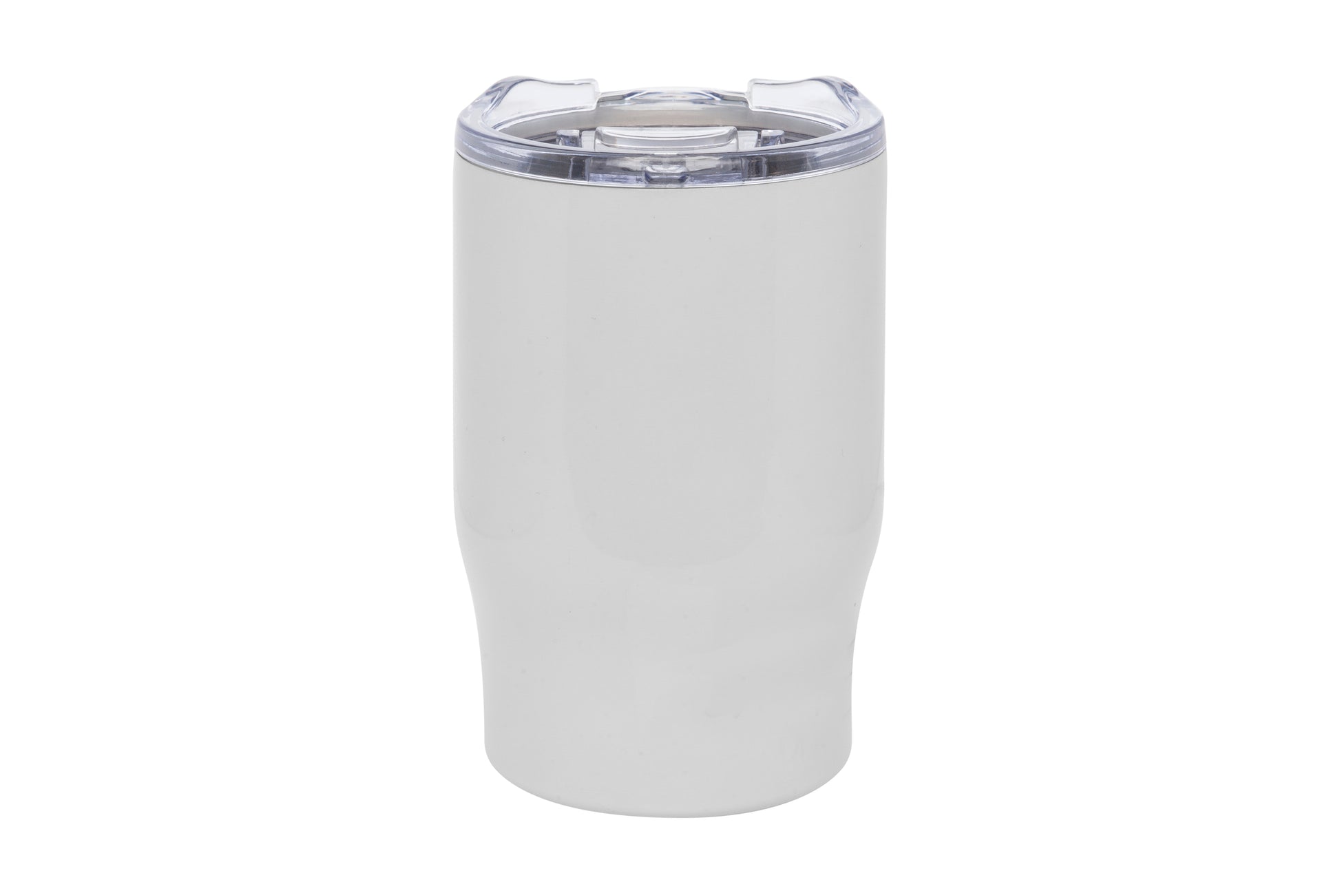 Ø 8,5 x 13,3 cm. capacidad 350 ml. acero inoxidable. mug doble pared. interior de acero 304 y exterior de acero 201. tapa plástica transparente a presión con anillo de silicona. mantienen las bebidas frías y calientes por más tiempo. no utilizar con bebidas gaseosas. presentación en caja de regalo.