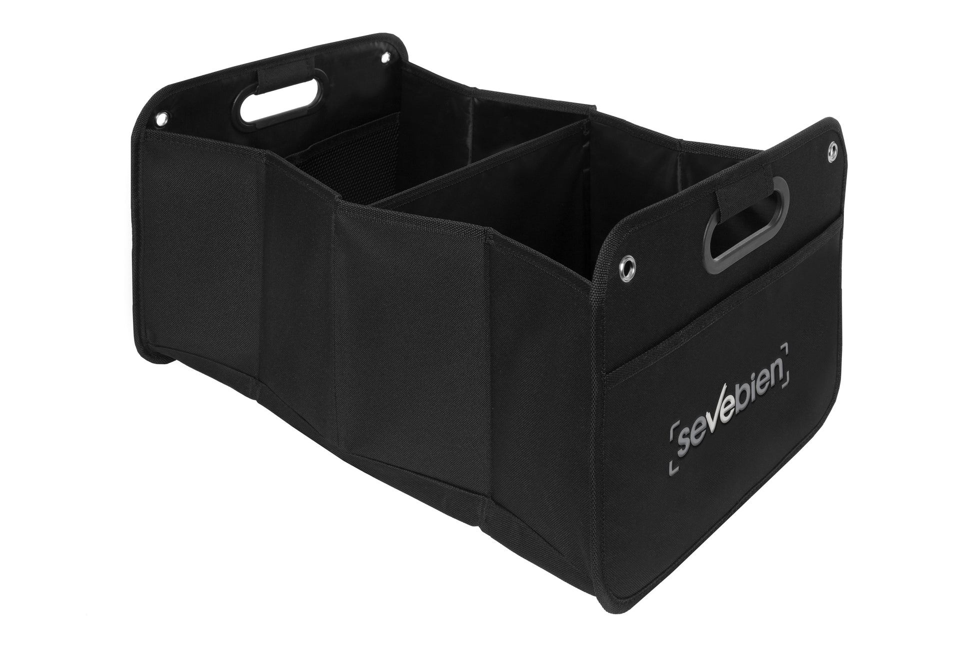 51 x 26,5 x 32,5 cm. (abierto). 5 x 26,5 x 32,5 cm (cerrado). polyester 600d. organizador. dos amplios compartimentos de 25,5 cm (aprox) cada uno con dos estructuras de cartón que permiten armar los contenedores. uno de los compartimentos tiene un bolsillo de red. manijas recubiertas en plástico. arandelas metálicas. en la parte inferior contiene velcro que se adhiere a la superficie. banda elástica que mantiene cerrado el organizador cuando no esta en uso.