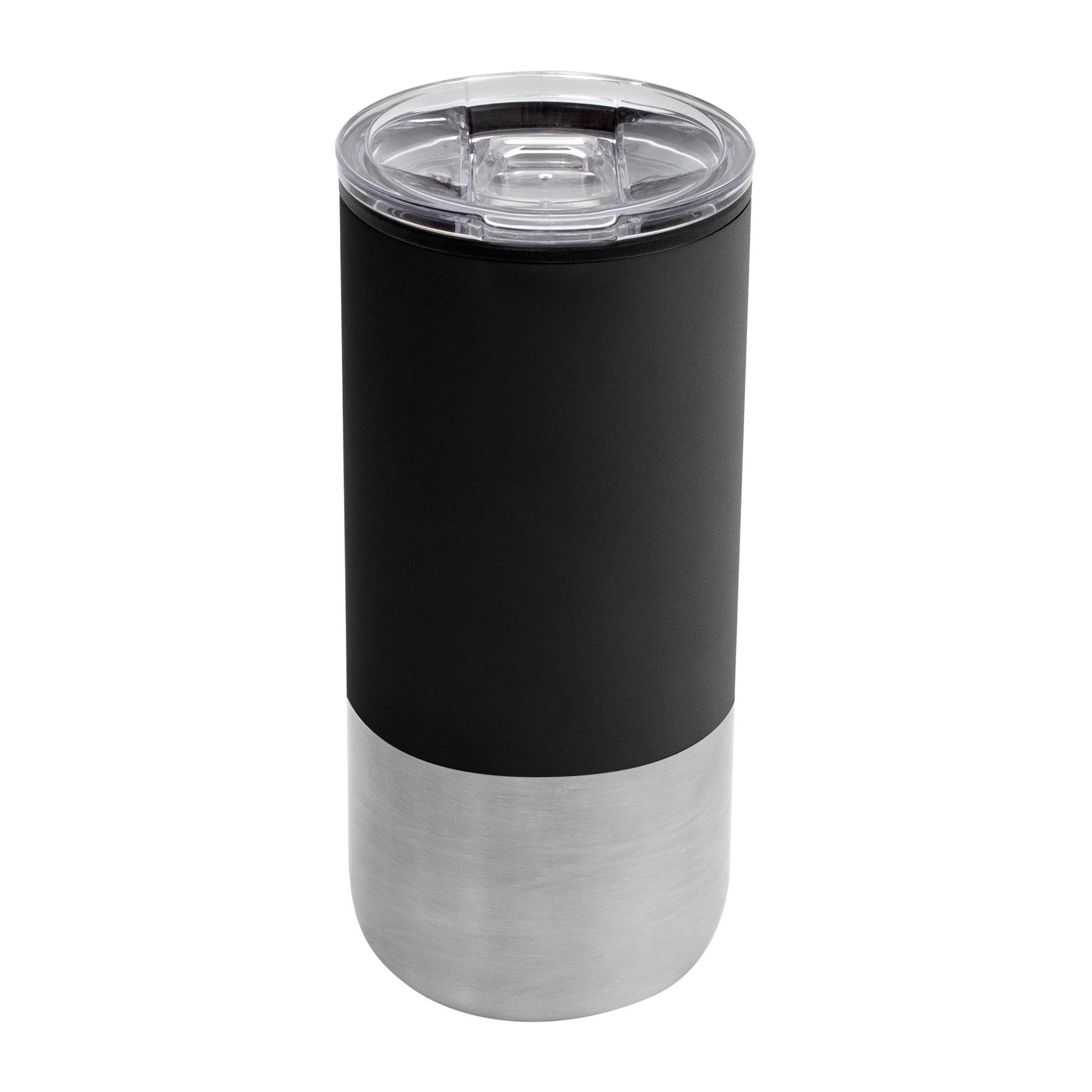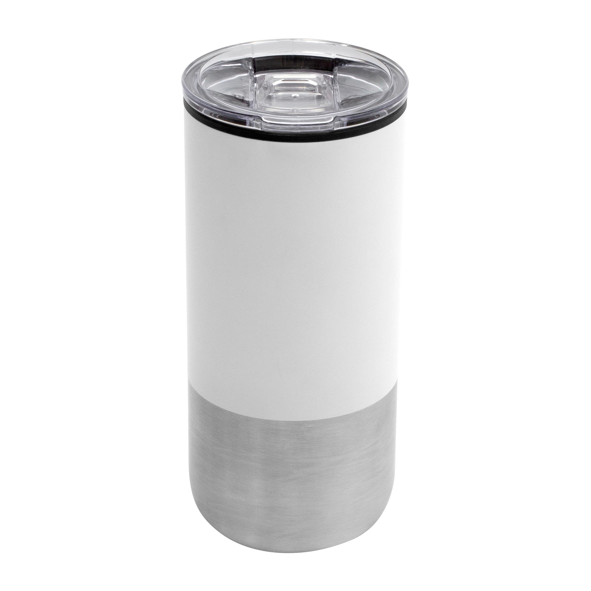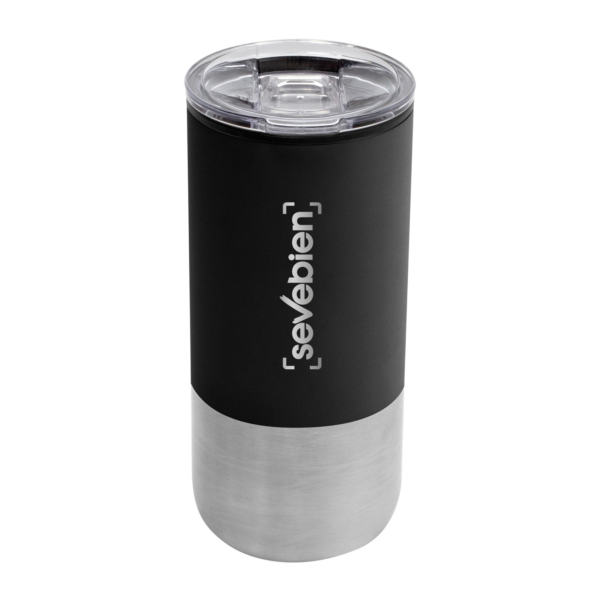 Ø 8 cm x 17.6 cm. capacidad 500 ml. polipropileno y acero inoxidable. mug doble pared. interior en plástico y exterior de acero inoxidable 201. tapa plástica transparente a presión con anillo de silicona. base antideslizante. presentación en caja de regalo.
