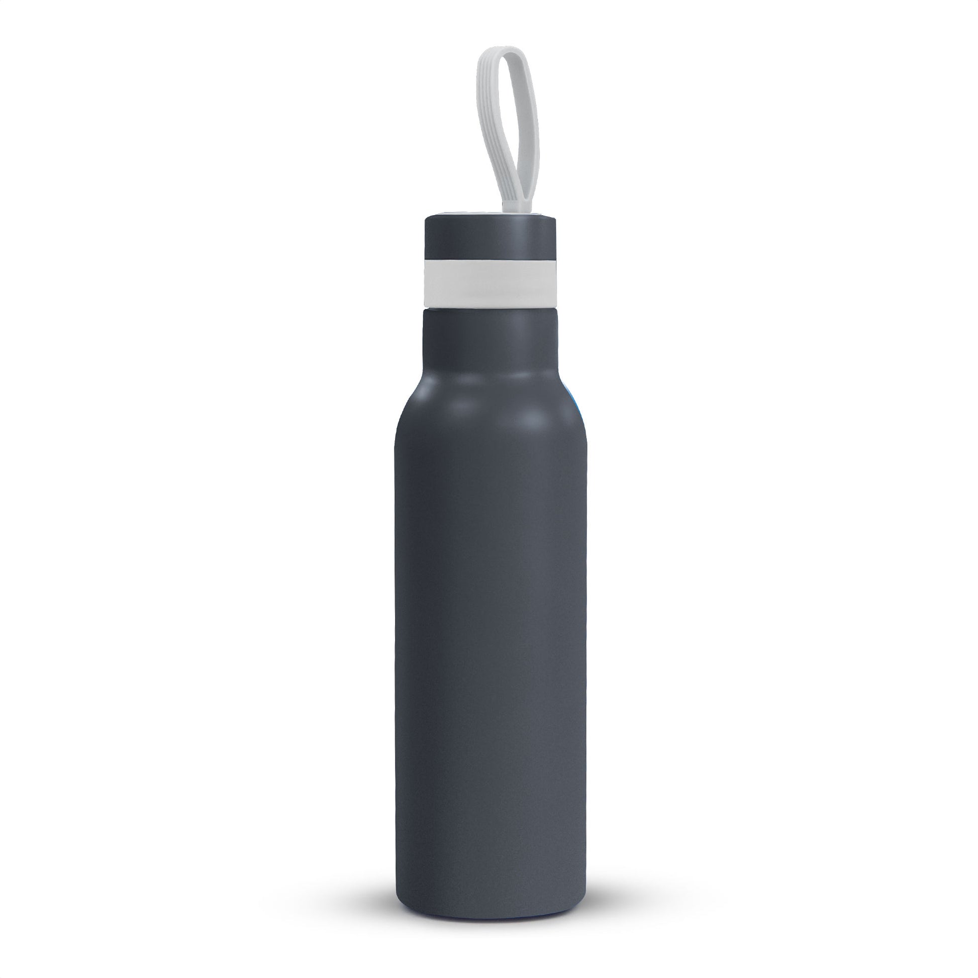 Ø 6,8 x 24,5 cm. capacidad 500 ml. acero inoxidable. botella vacuum. interior en acero 304 y exterior en acero 201. acabado satinado mate. detalle de agarre siliconado gris.. mantiene hasta 12 hs la temperatura de las bebidas calientes y 24 hs de las bebidas frías. presentación en caja de regalo kraft.