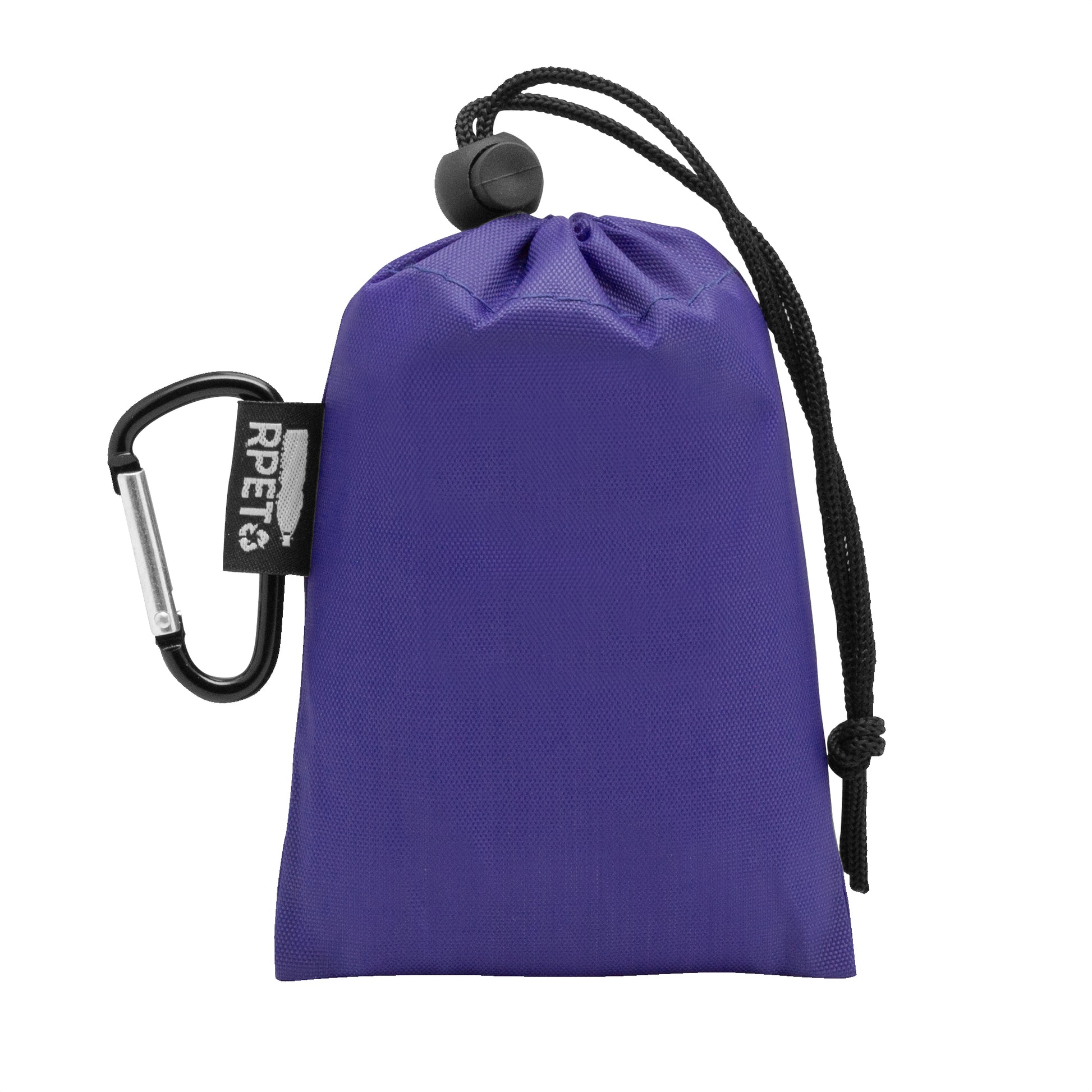 127 x 100 cm. polietileno. poncho impermeable. presentación en bolsa de rpet de diferentes colores con cierre ajustable y mosquetón de aluminio color negro.
