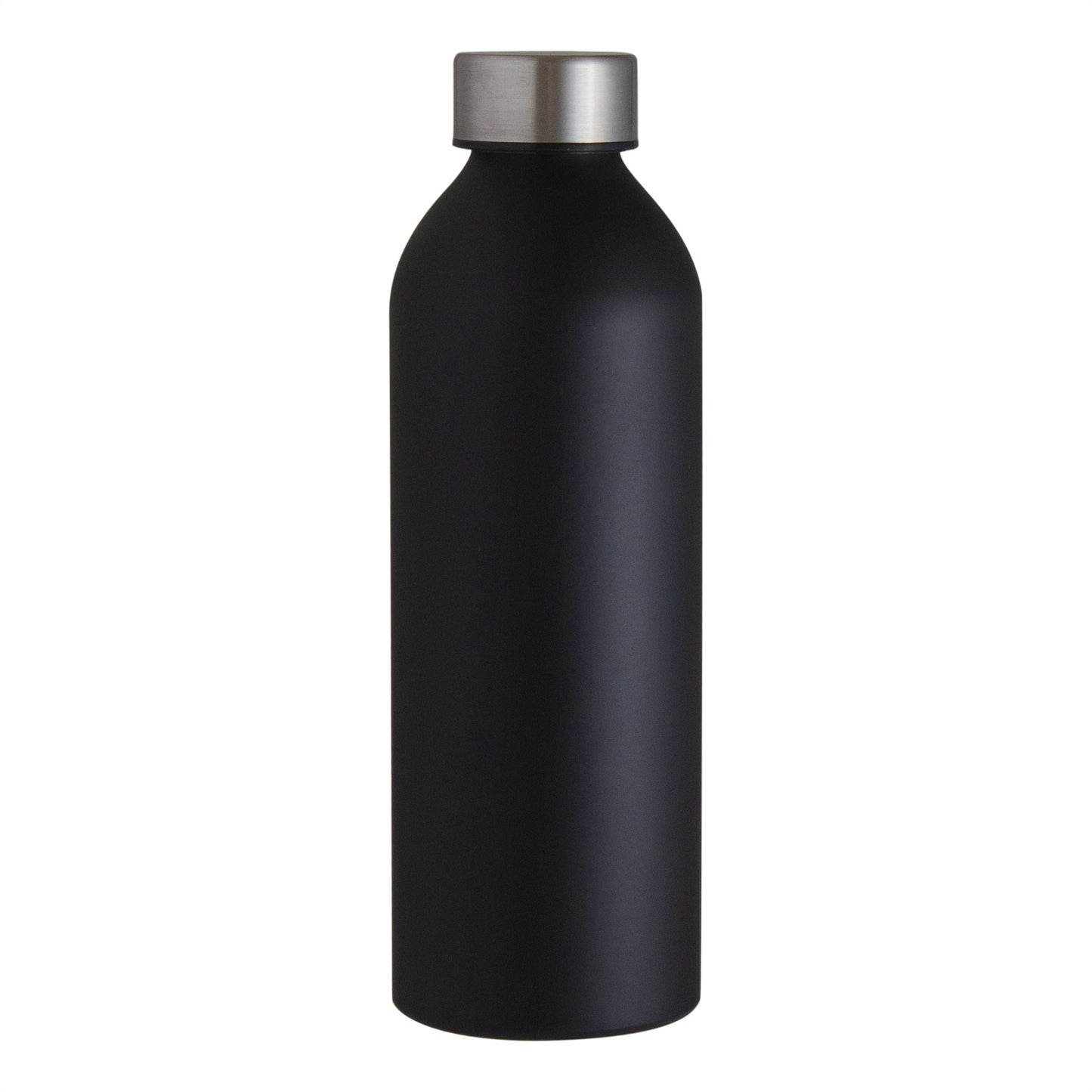 sencillez y funcionalidad.botella de aluminio con acabado mate. tapa a rosca color plata en acero inoxidable 201 y anillo de silicona antiderrame.