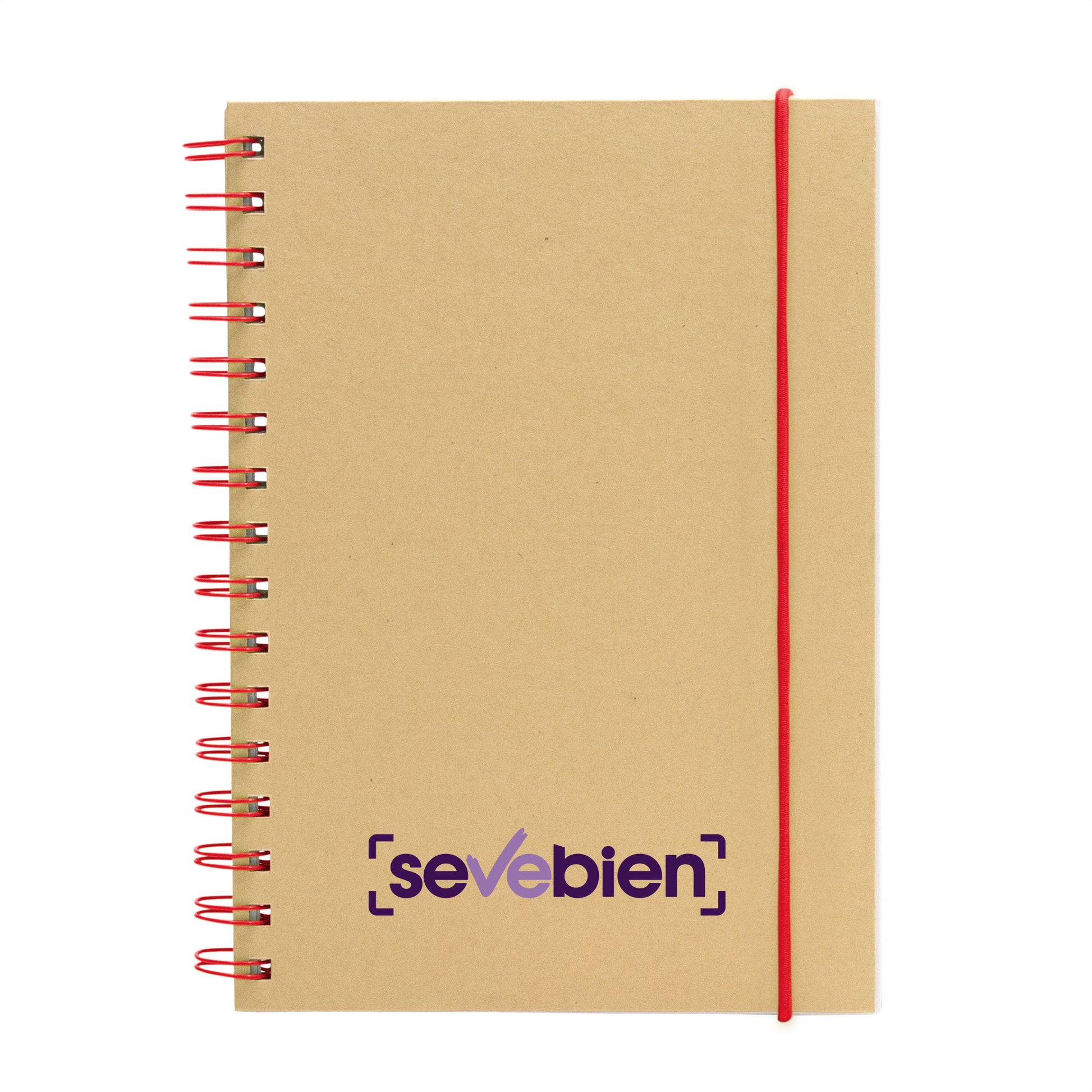 perfecta para los creativos.libreta espiralada. tapa recubierta en papel kraft de 120 g. interior de 70 hojas blancas rayadas de 80 g. cierre con banda elástica y espiral del mismo color.