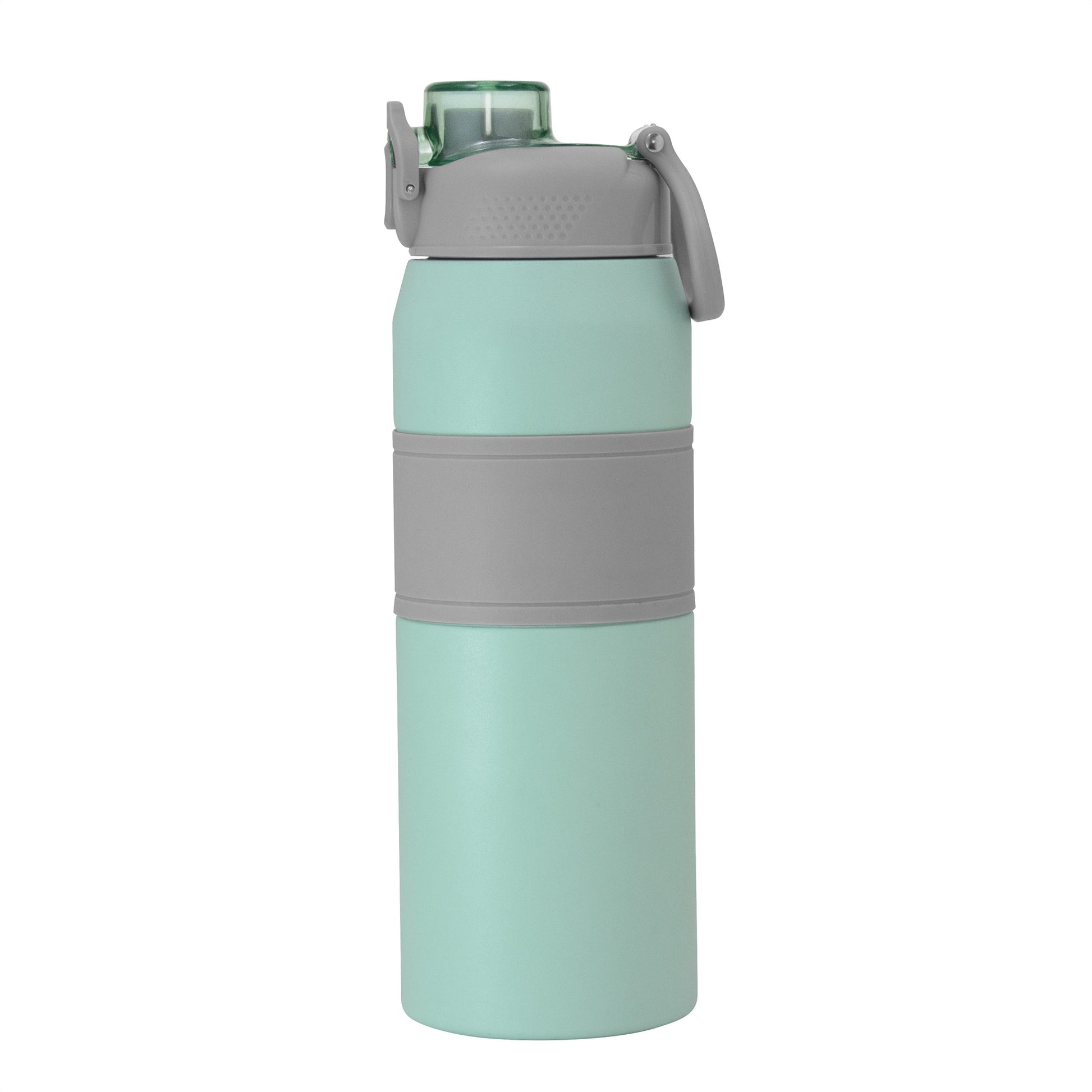 hidratación a otro nivel.botella deportiva con doble pared, sellada al vacío. interior de acero 304 y exterior de acero 201. pintura powder coat (pintura más duradera y resistente a la corrosión y el paso del tiempo). tapa plástica a rosca en color gris con anillo de silicona y manija plástica para su agarre, combinada con tapa rebatible en colores translucidos a juego con el color de la botella. boquilla con sorbete incluido. grip de silicona color gris para mejor agarre. mantiene alrededor de 8 hs la temperatura de las bebidas calientes y frías.