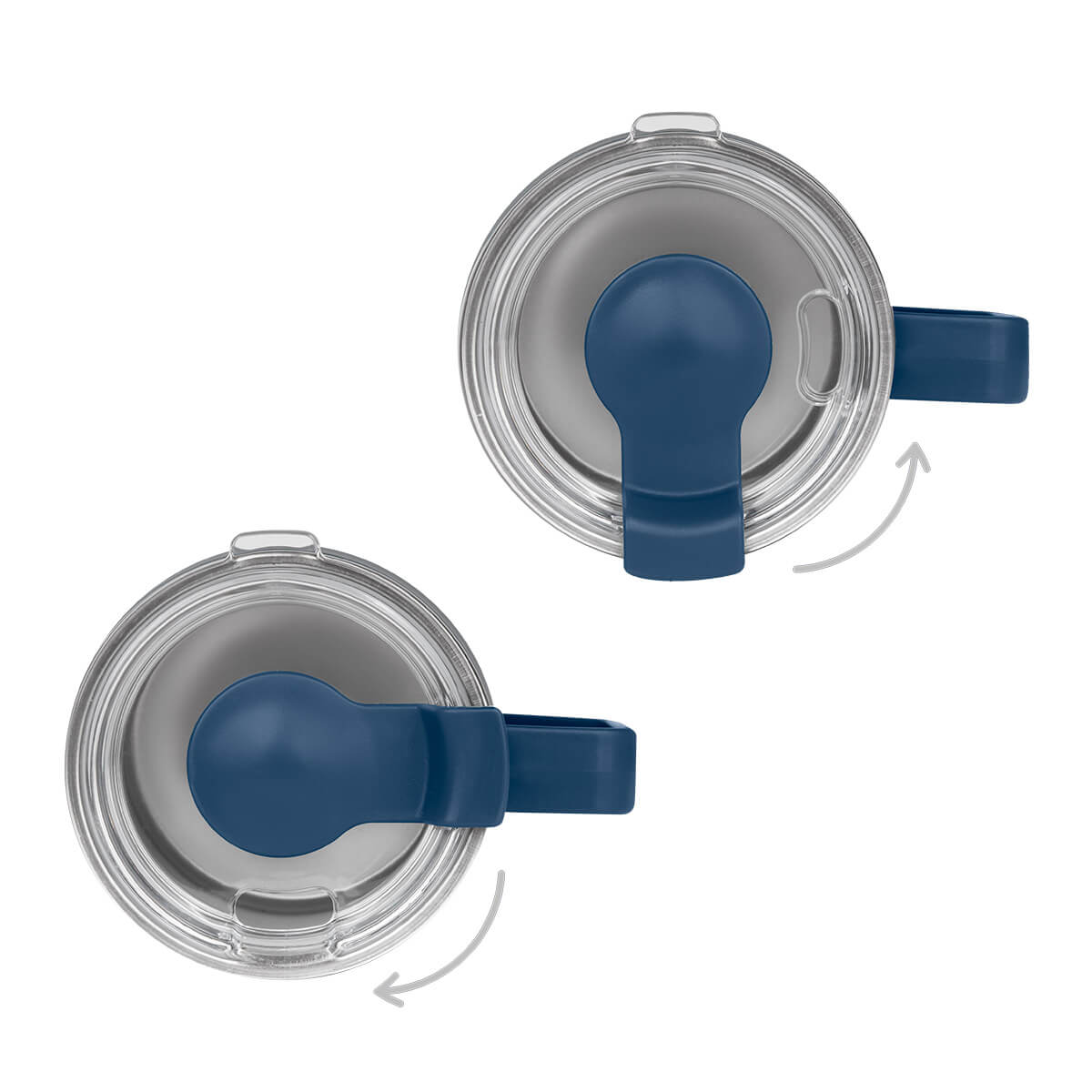taza doble pared. pared interna de acero inoxidable y externa de plástico. incluye tapa de plástico tipo push con sobretapa giratoria. capacidad de 15 oz. base de 9.2 cm de diámetro. incluye caja individual.