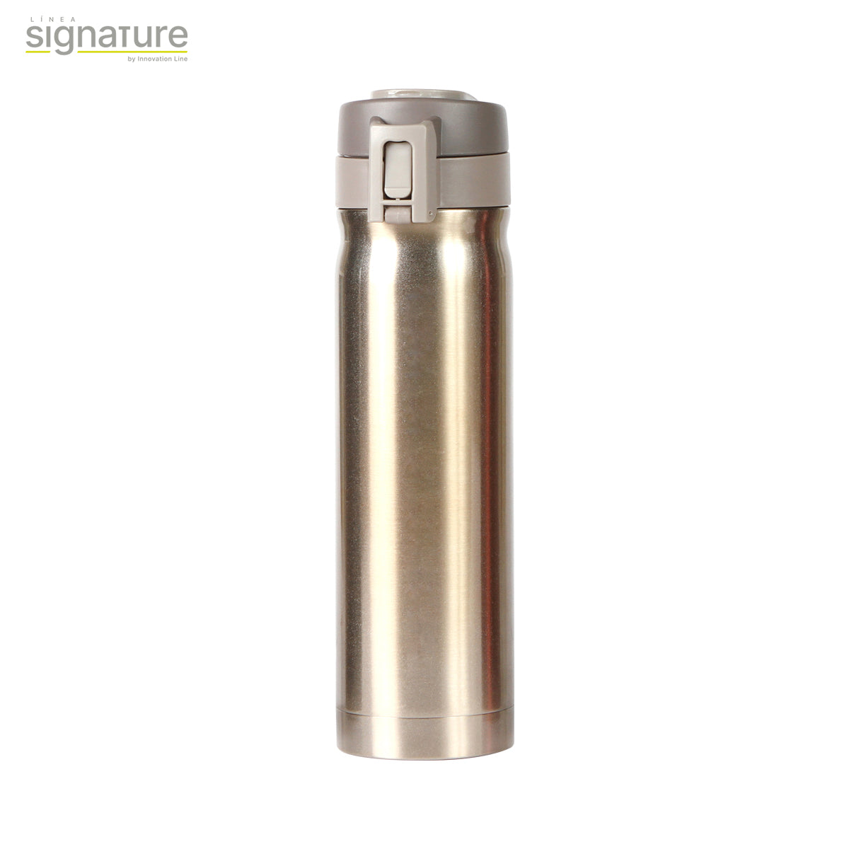 termo de acero inoxidable doble pared con tapa con seguro, fabricado en materiales de grado alimenticio, mantiene bebidas frías o calientes por un largo tiempo, no usar en microondas. capacidad de 500 ml (17 oz). incluye caja de cartón individual.