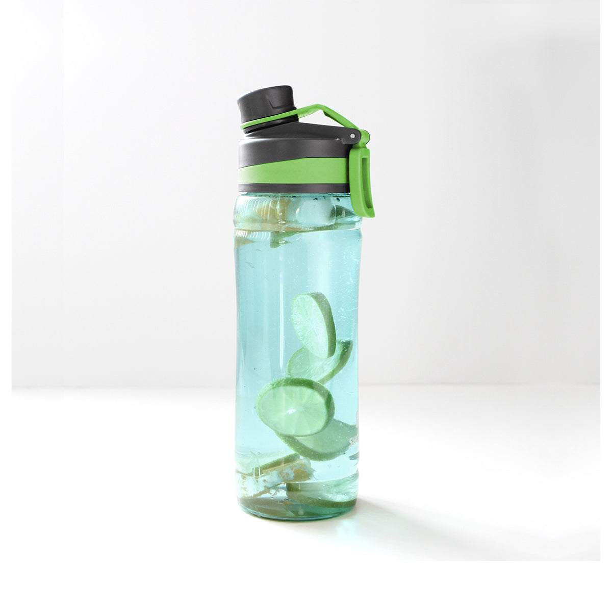 cilindro deportivo translucido fabricado en policarbonato de alta densidad, con tapón de seguridad, colador y sujetador de plástico. capacidad 780 ml (26 oz).