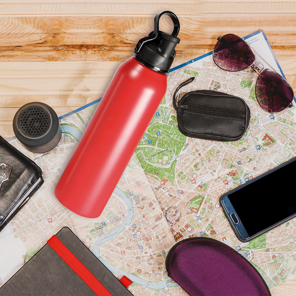 termo fabricado en acero inoxidable con tapa y agarradera de plástico, fabricado en materiales de grado alimenticio, no usar en microondas. capacidad 750ml (26oz). incluye caja de cartón individual.