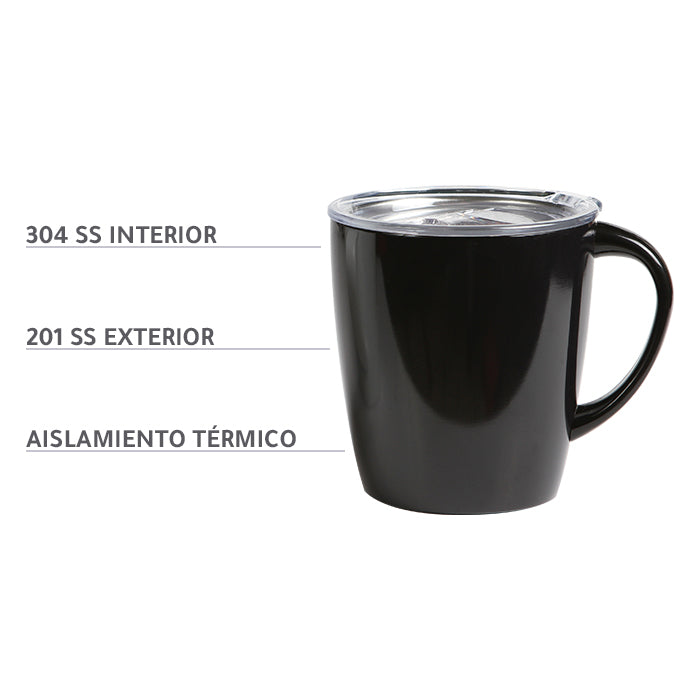 taza de acero inoxidable doble pared con tapa deslizable de plástico transparente, fabricado en materiales de grado alimenticio, mantiene bebidas frías o calientes por un largo tiempo, no usar en microondas, capacidad de 354ml (12 oz). incluye caja de cartón individual.