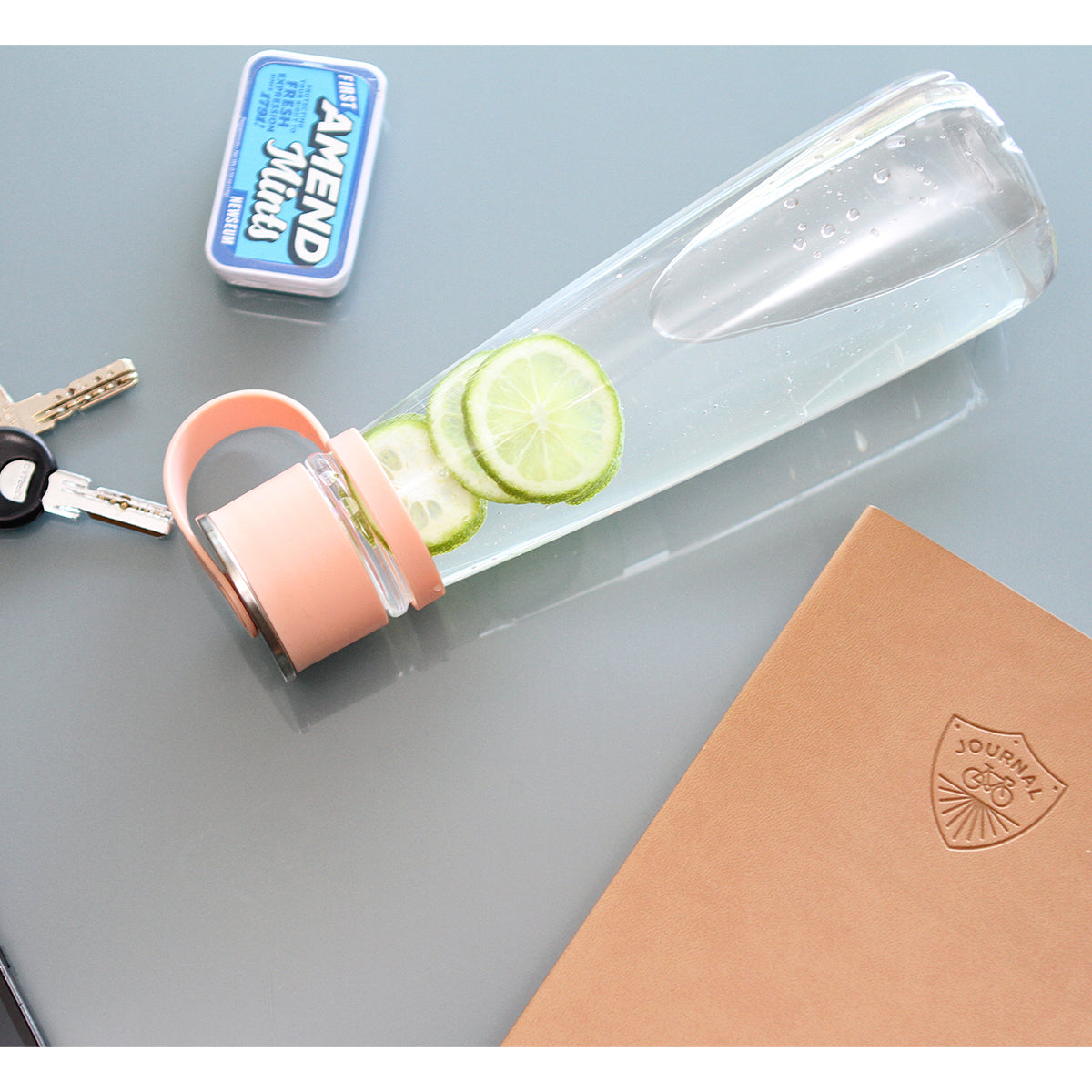cilindro de policarbonato con tapa en polipropileno y detalle en metal, fabricado con materiales de grado alimenticio, no usar en microondas, capacidad de 580 ml (19 oz).