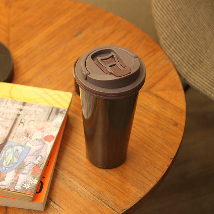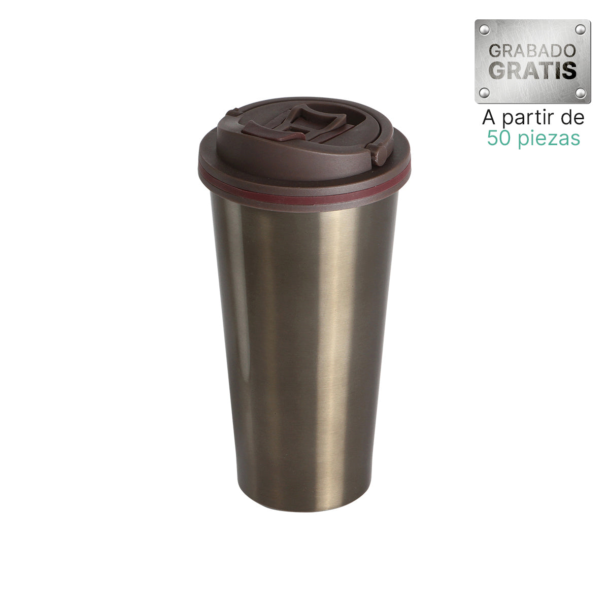vaso de aluminio doble pared con tapa de seguridad, fabricado en materiales de grado alimenticio, mantiene bebidas frías o calientes por un largo tiempo, no usar en microondas, capacidad 450 ml ( 15oz ). incluye caja de cartón individual.