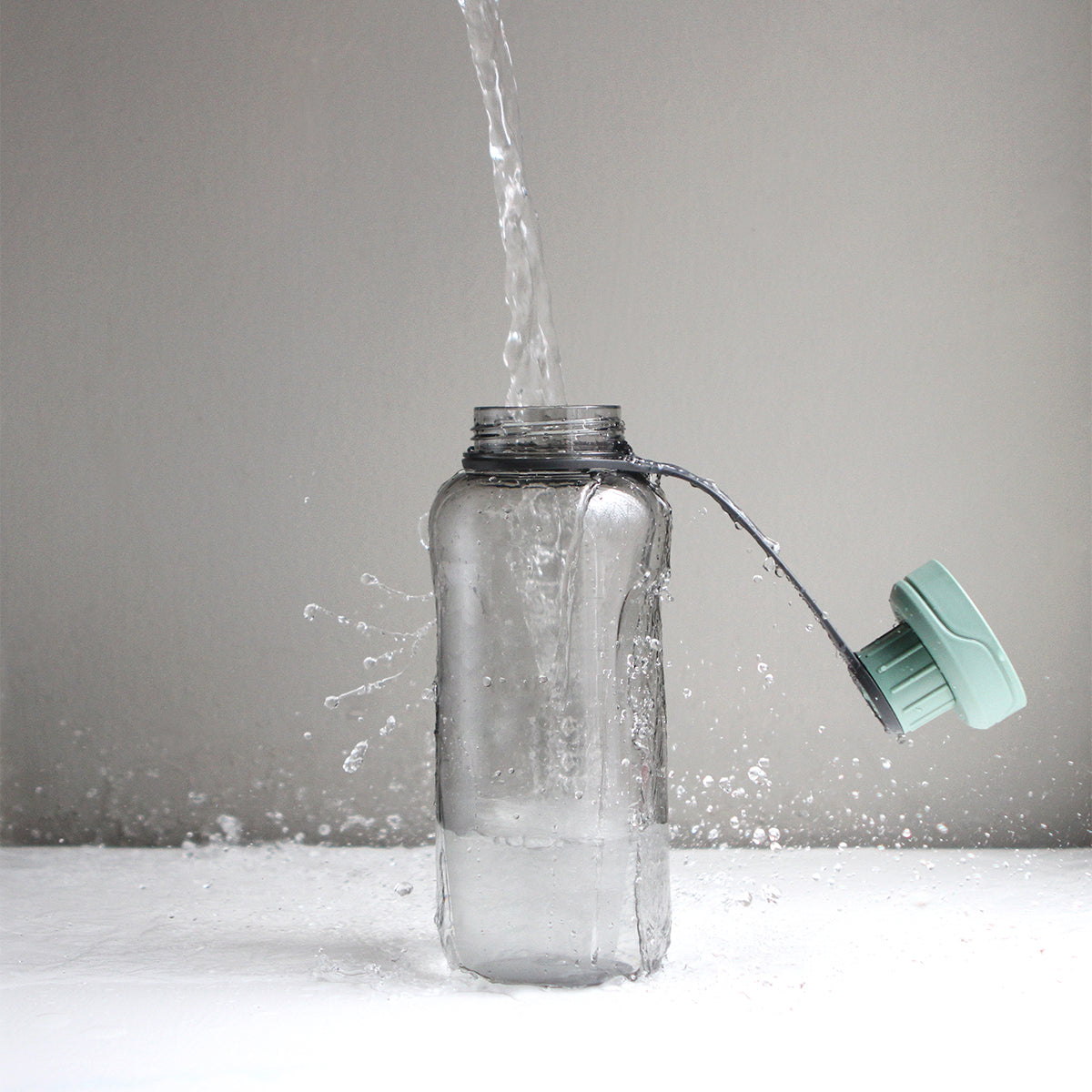 botella deportiva fabricada en policarbonato con tapa de rosca fabricada en pp y asa de pe. fabricada en materiales de grado alimenticio, ideal para bebidas frías o calientes; no usar en microondas. capacidad de 1,500 ml (50.5 oz). puede soportar temperaturas de -20°c a 99°c. tapa a prueba de escurrimientos o fugas.
