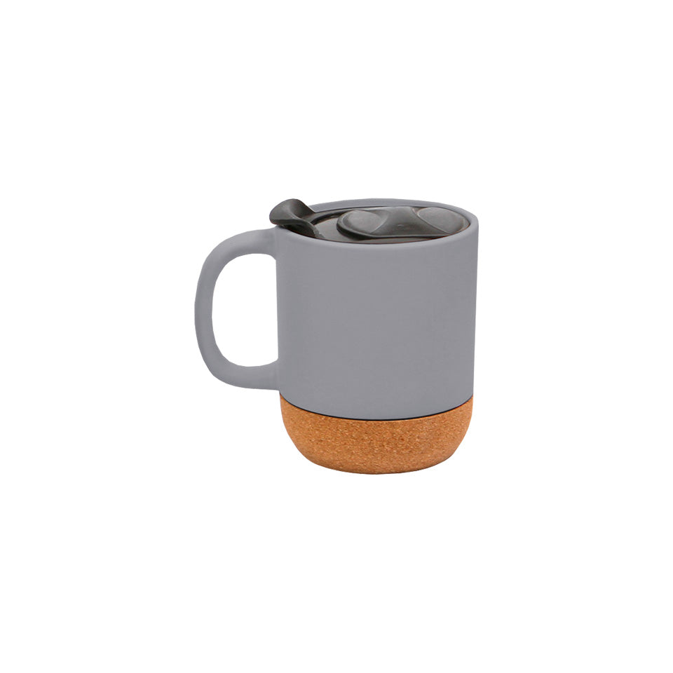 taza de cerámica con base de corcho aislado extraíble y tapa deslizable de pp (polipropileno). ideal para té o café. capacidad 400 ml. incluye caja de cartón individual.