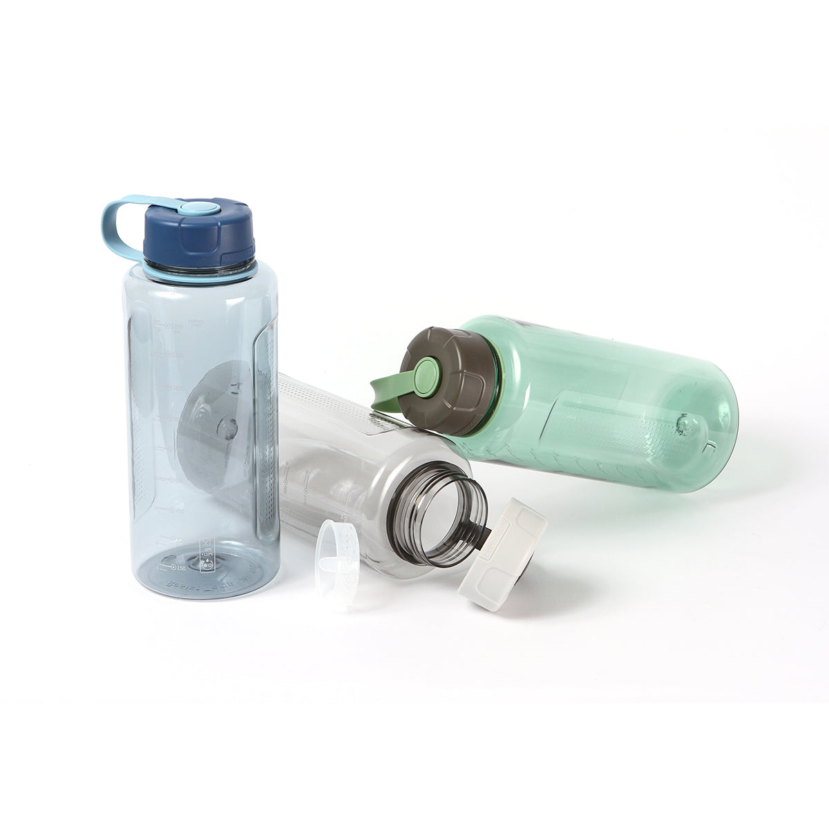 botella deportiva fabricada en policarbonato con tapa de rosca fabricada en pp y asa de pe, en materiales de grado alimenticio, ideal para bebidas frías o calientes; no usar en microondas. capacidad de 1,500 ml (50.5 oz).