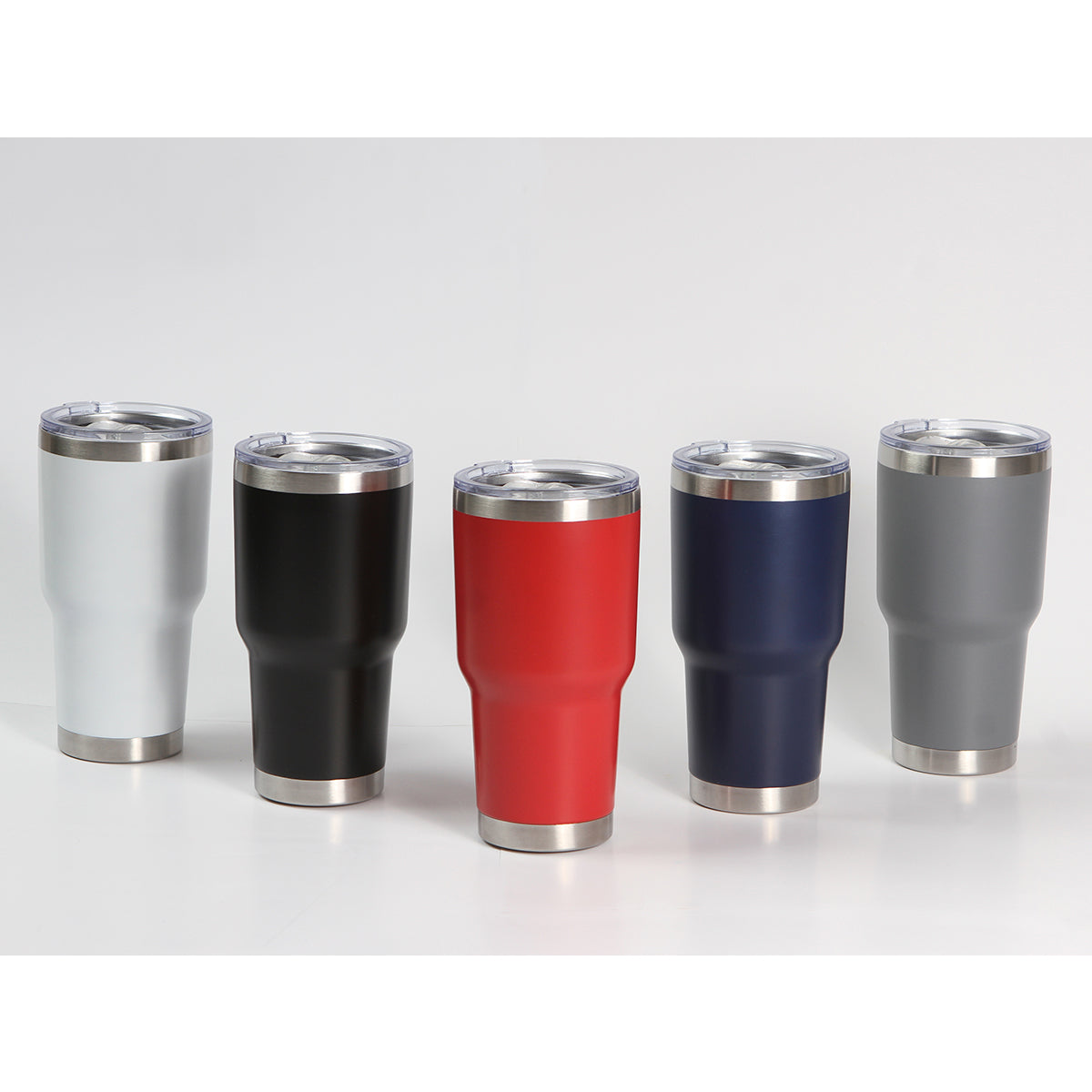 termo de acero inoxidable doble pared acabado mate y detalles plateados en filo y base, con tapa deslizable de plástico transparente. fabricado en materiales de grado alimenticio, mantiene bebidas frías o calientes por un largo tiempo. no usar en microondas. capacidad de 850 ml. (29 oz) incluye caja de cartón individual.