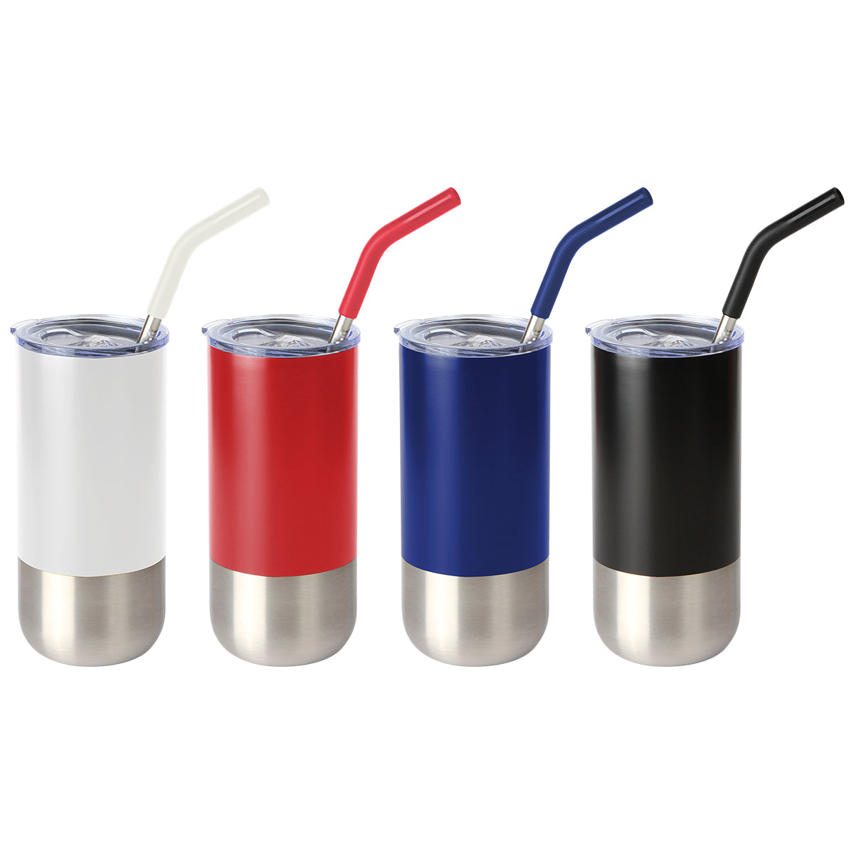 termo de acero inoxidable con doble pared, tapa de plástico transparente, popote de acero inoxidable con boquilla removible de silicón. capacidad de 480 ml. incluye caja de cartón individual.