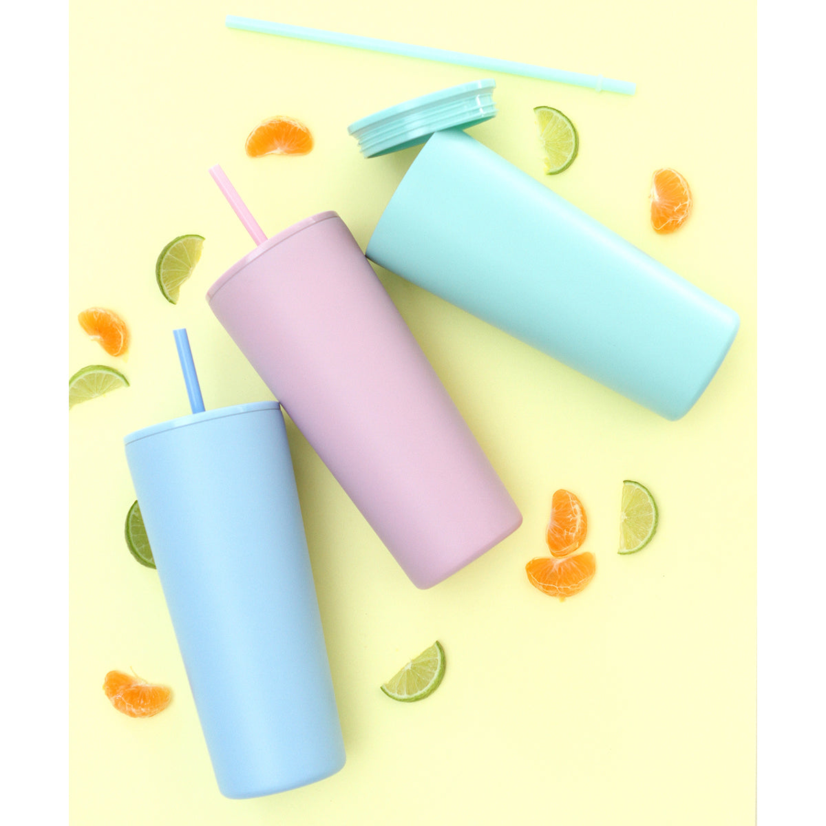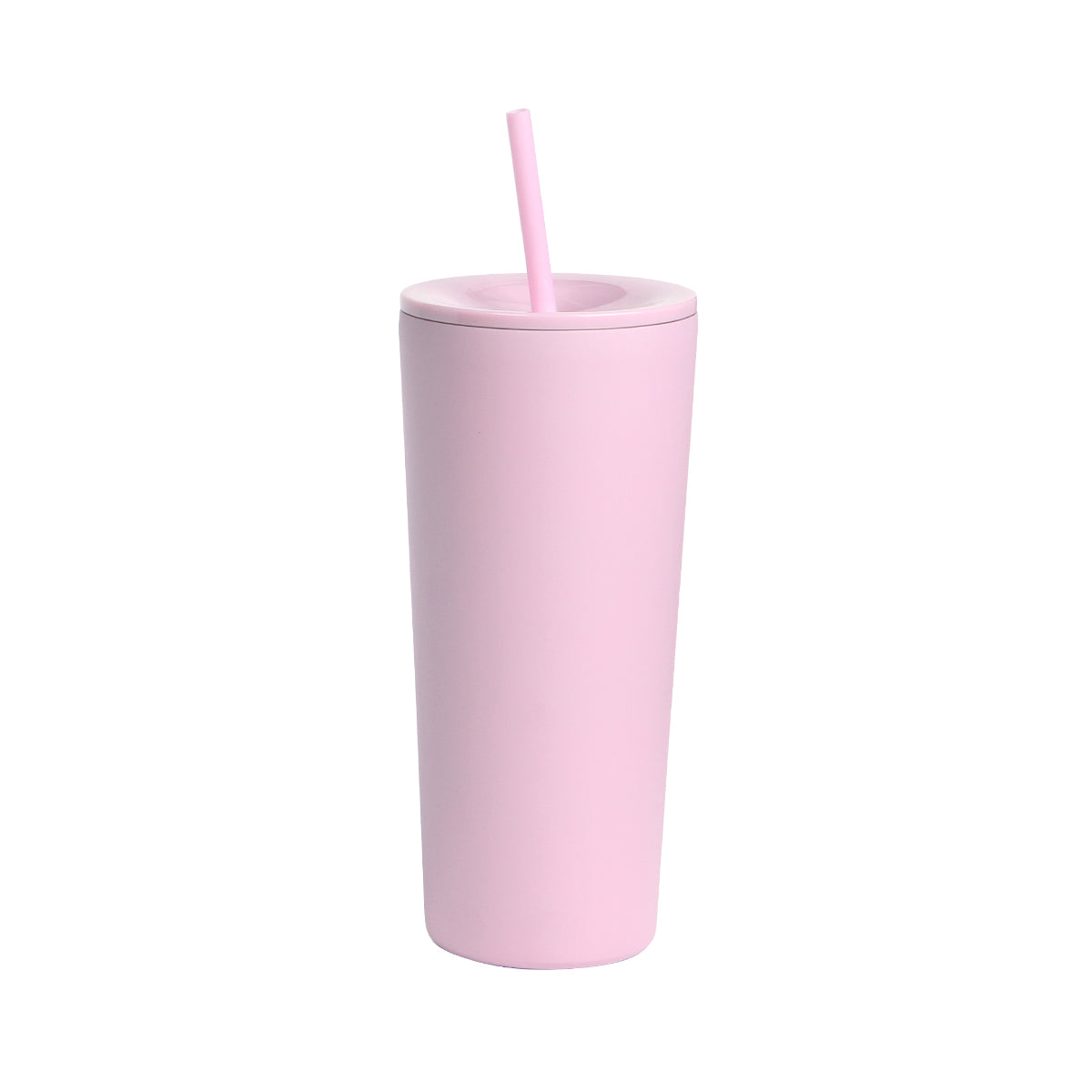 vaso de acero inoxidable doble pared con tapa de plástico tipo rosca, con popote. fabricado en materiales de grado alimenticio, mantiene bebidas frías o calientes por un largo tiempo. no usar en microondas. capacidad 660 ml. incluye caja de cartón individual.