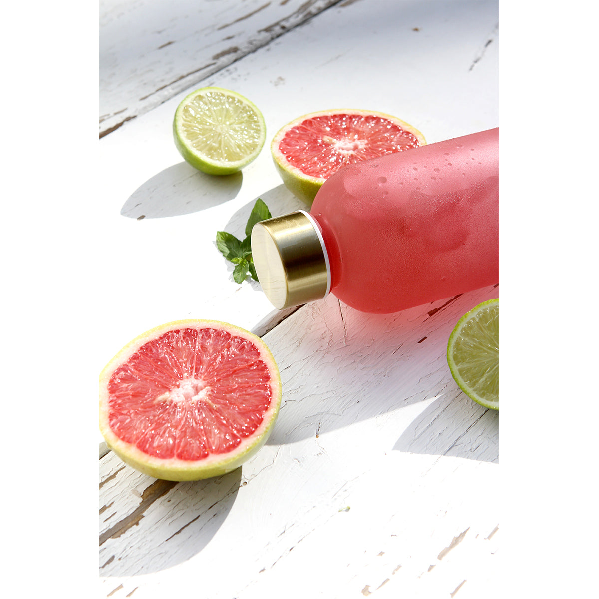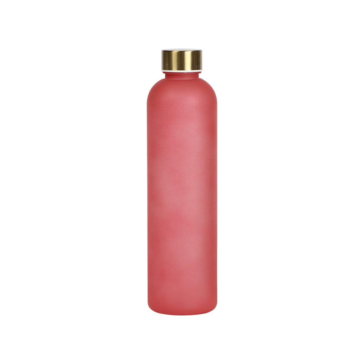 botella de plástico mate fabricada con materiales de alta calidad libres de contaminante bpa, con tapa dorada, capacidad de 1 litro, terminado mate. incluye caja individual