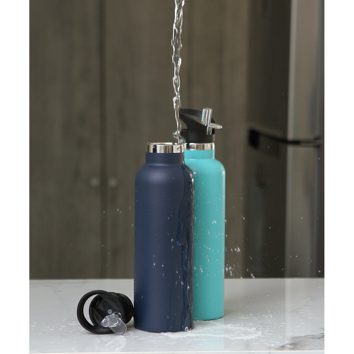 botella deportiva de acero inoxidable doble pared con tapa plastica, popote y asa. nuestra botella está fabricada en materiales de grado alimenticio y el acero inoxidable permite mantener tus bebidas frías o calientes por un largo tiempo. el popote puede contraerse lo que ayuda a mantener seguro el liquido de la botella.no usar en microondas. capacidad de 750 ml. (25 oz) incluye caja de cartón individual.