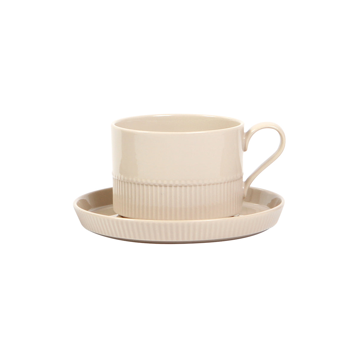 juego de té, incluye taza con plato fabricados en porcelana, con relieve de rayas en la parte inferior y diseño glowy. capacidad 200 ml.
