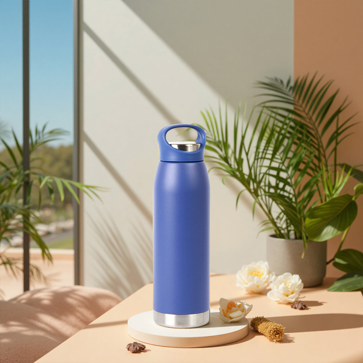termo de doble pared fabricado en acero inoxidable, con detalle plateado en la parte inferior del termo, cuenta con cubierta de color y asa en la tapa. el acero inoxidable permite mantener tus bebidas frías o calientes por un largo tiempo. capacidad de 680 ml. incluye caja de cartón individual.