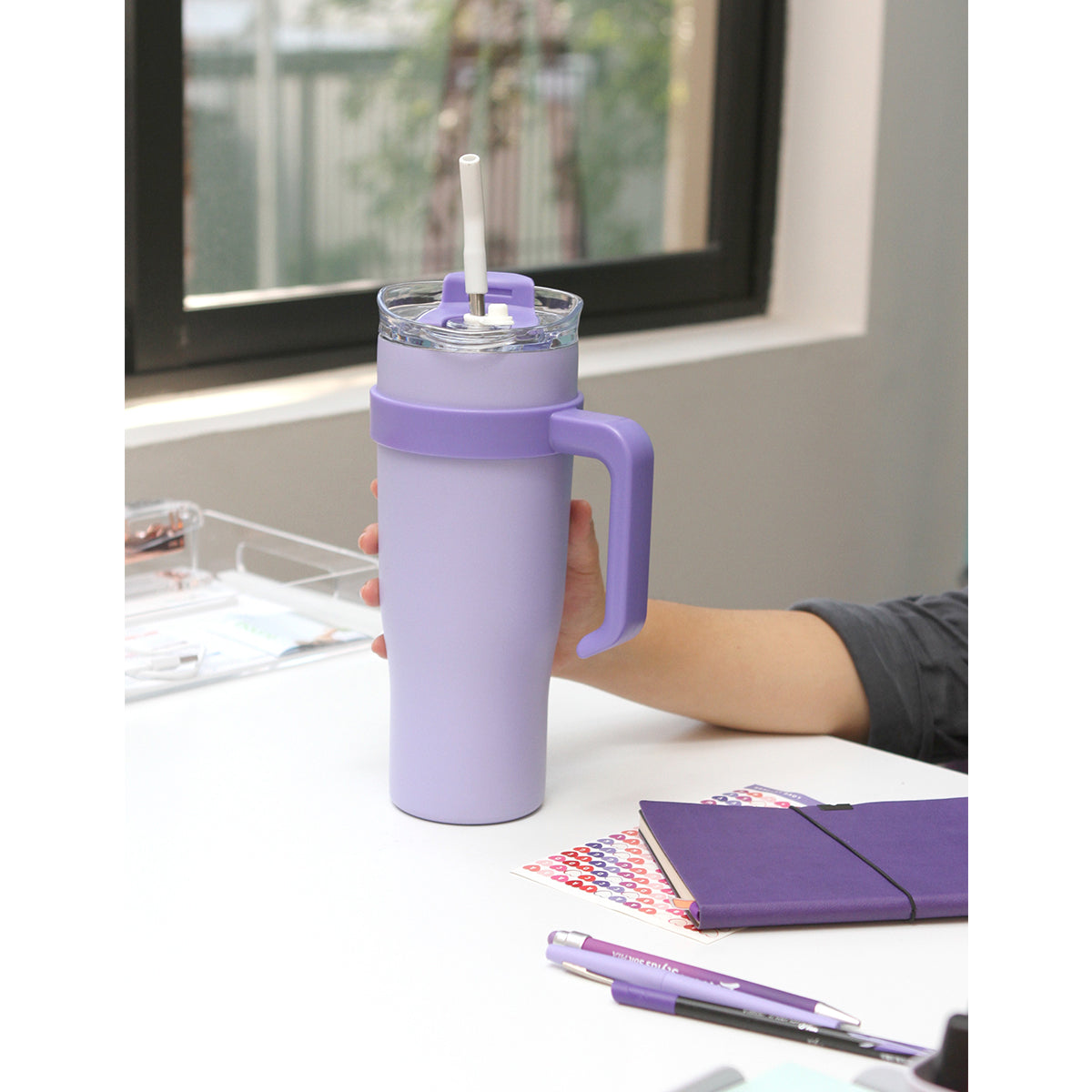 termo doble pared fabricado en acero inoxidable ss304 y ss201, incluye popote de acero inoxidable con boquilla removible de silicón, agarradera, tapa transparente con entrada hermética para popote y compartimento para boquilla con capacidad de 1,200 ml. incluye caja de cartón individual.