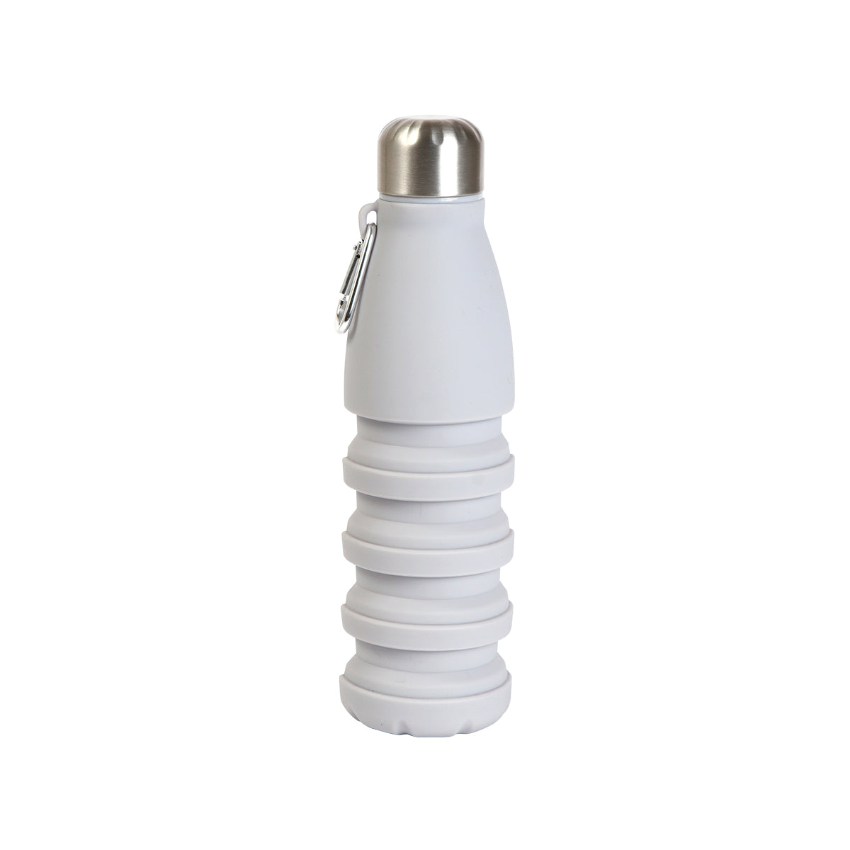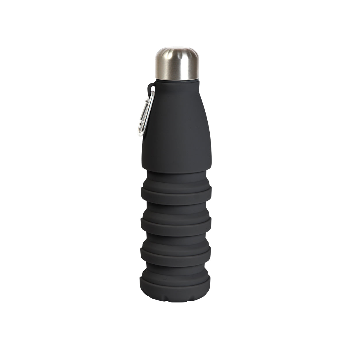 botella retráctil fabricada en silicón, con capacidad de 550 ml, diseño en color sólido, tapa y arnés fabricados en acero inoxidable. incluye mosquetón. este termo te acompaña a donde quieras, por su gran practicidad.