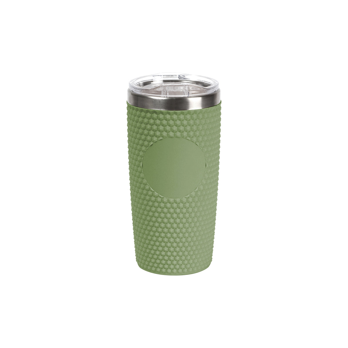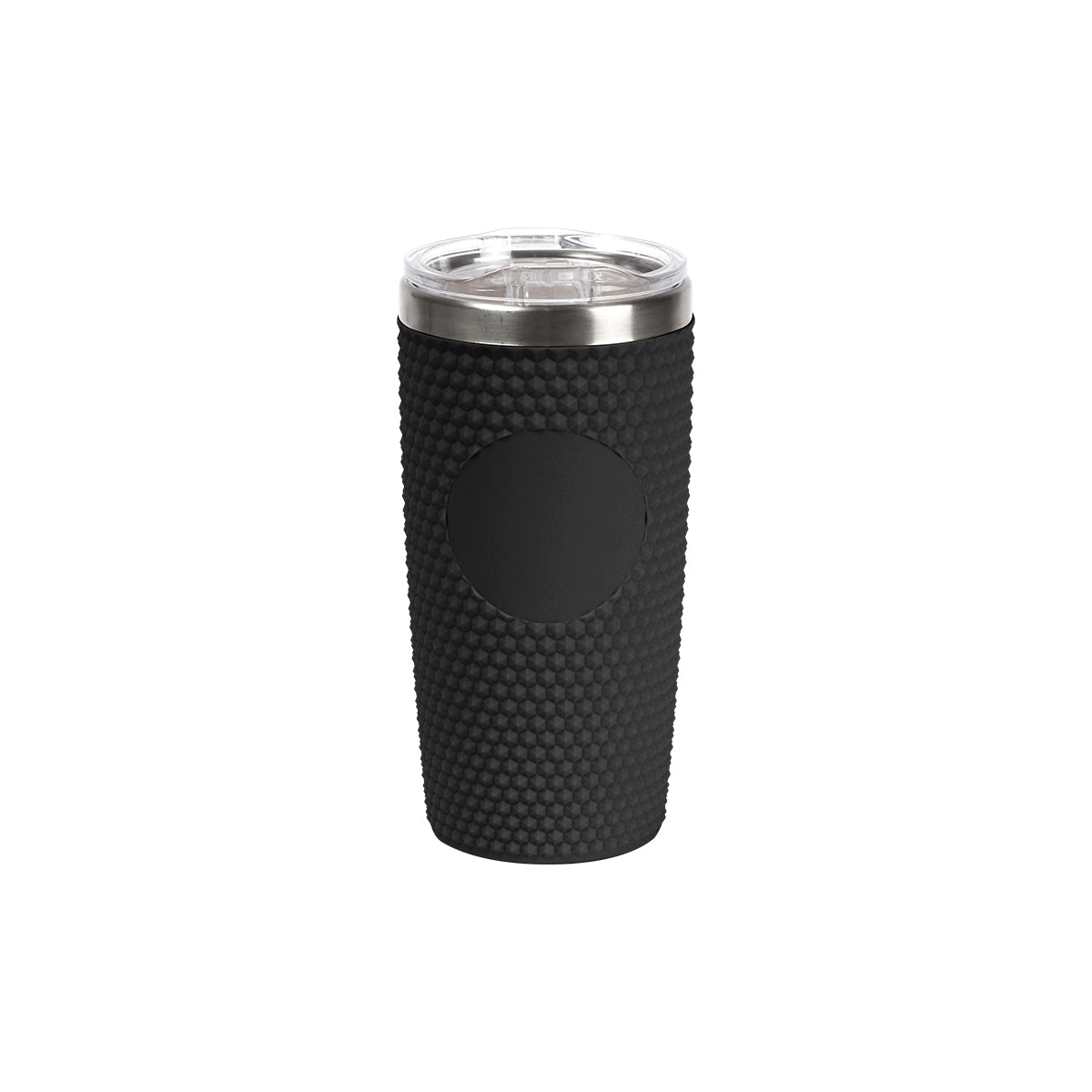 vaso doble pared fabricado en acrilonitrilo estireno. incluye tapa transparente deslizable, con anillo de silicón para sellado. su diseño con relieve lo hace atractivo y diferente. capacidad 520 ml.