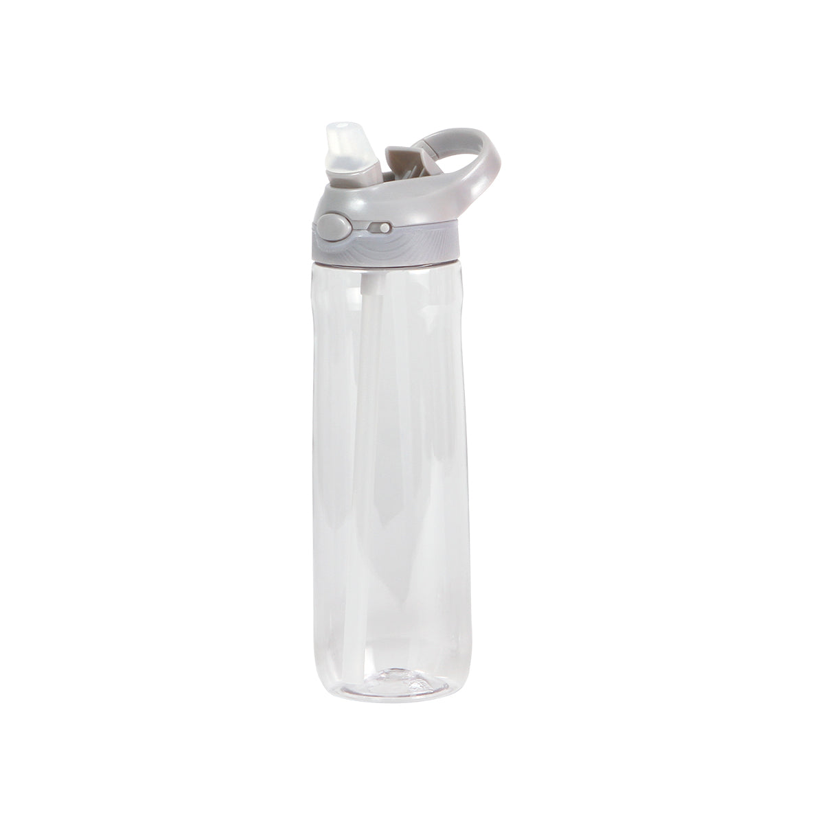 botella con cuerpo transparente y tapa con bloqueo de seguridad, cuenta con boquilla de silicona y agarradera de color, fabricada en tritán y abs. capacidad de 750 ml, peso de 183 g.