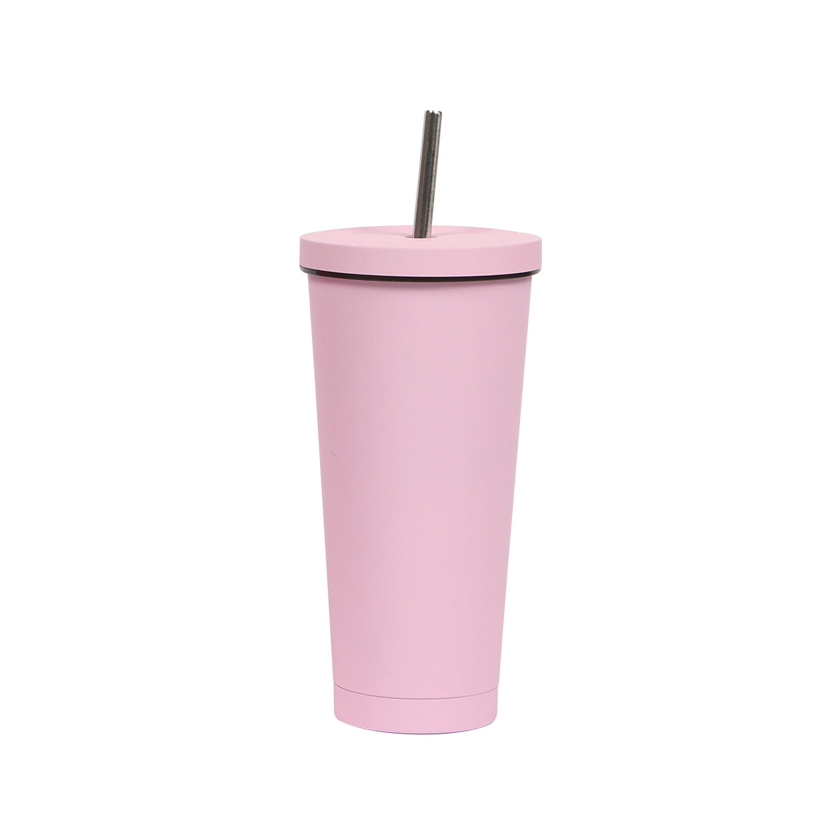 vaso con doble pared fabricado en acero inoxidable, incluye tapa y popote de metal. capacidad de 750 ml. diseño con detalle negro brillante y cuerpo con acabado mate