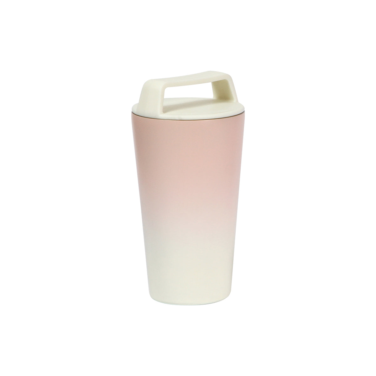 vaso de doble pared fabricado en acero inoxidable 304 y 201 con colores degradados, rosa, morado, verde y azul incluye tapa, capacidad de 450 ml.