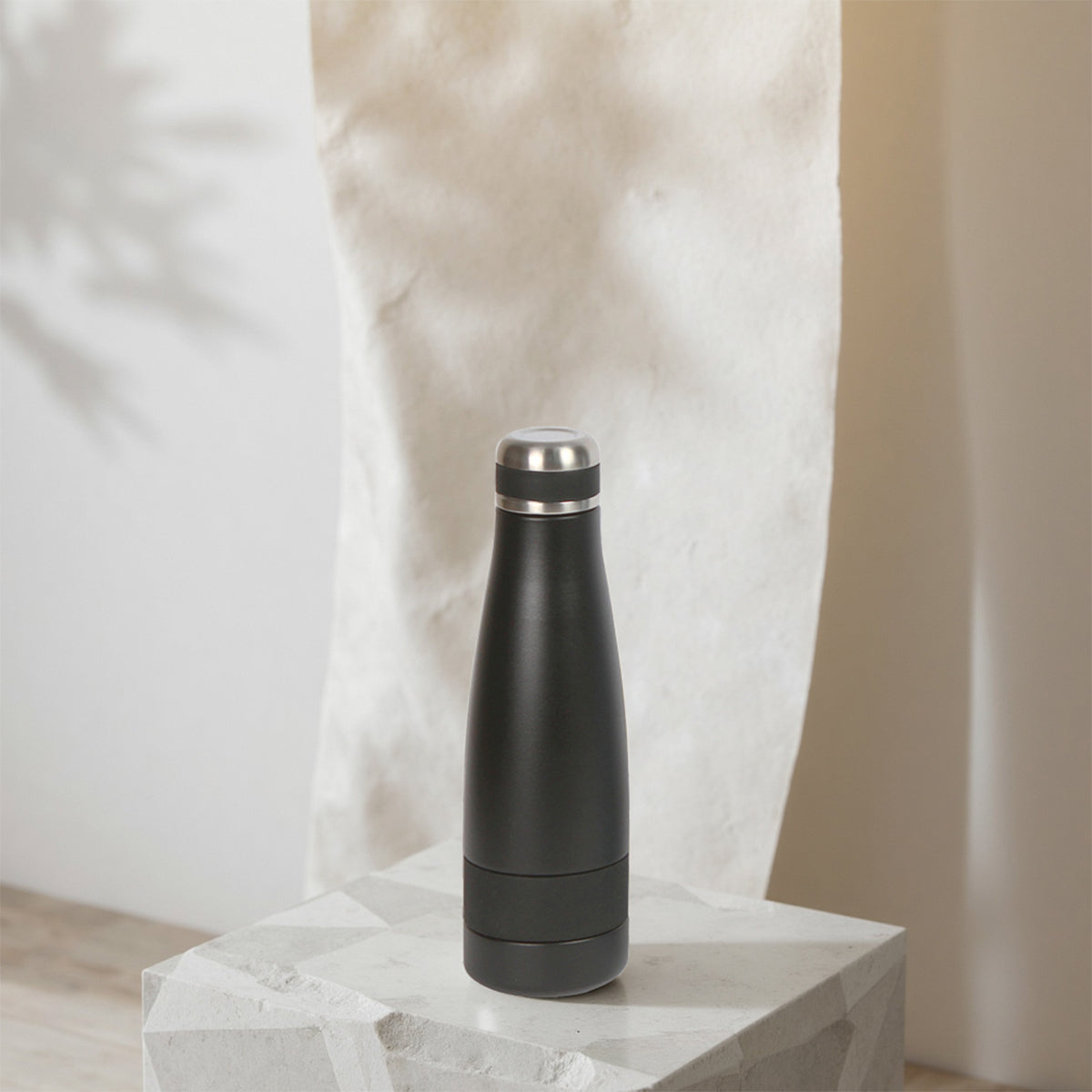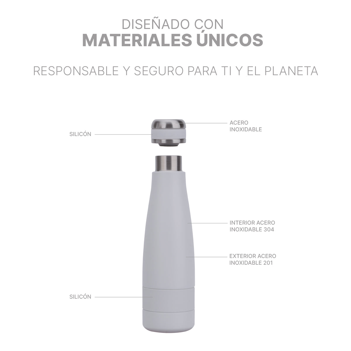 termo de doble pared fabricado en acero inoxidable, interior 304 y exterior 201. incluye tapa de rosca. pintado con acabado de recubrimiento de polvo, resultando colores brillantes de alta calidad. capacidad de 600 ml.