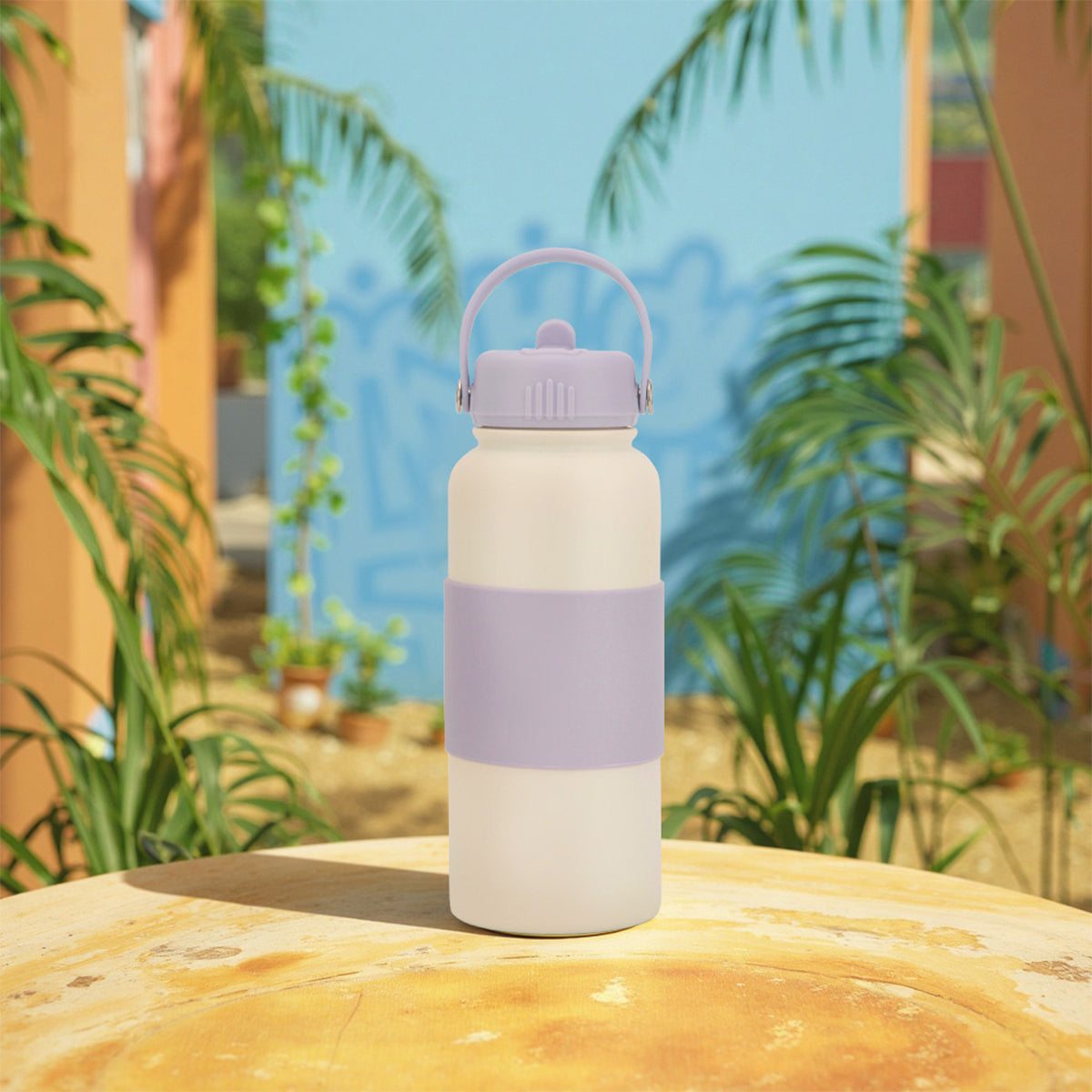 termo de doble pared fabricado en acero inoxidable, con detalles coloridos. manga de silicón para una mejor manipulación y evitar que se deslice. incluye una tapa de polipropileno con agarradera fabricada en tpr. capacidad de 1,000 ml.