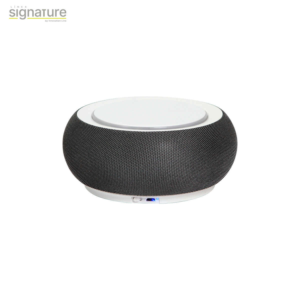 bocina con conexión de sonido sin cables, cargador inalámbrico y luz led; carga a través de cable usb (incluido). incluye caja individual de cartón.