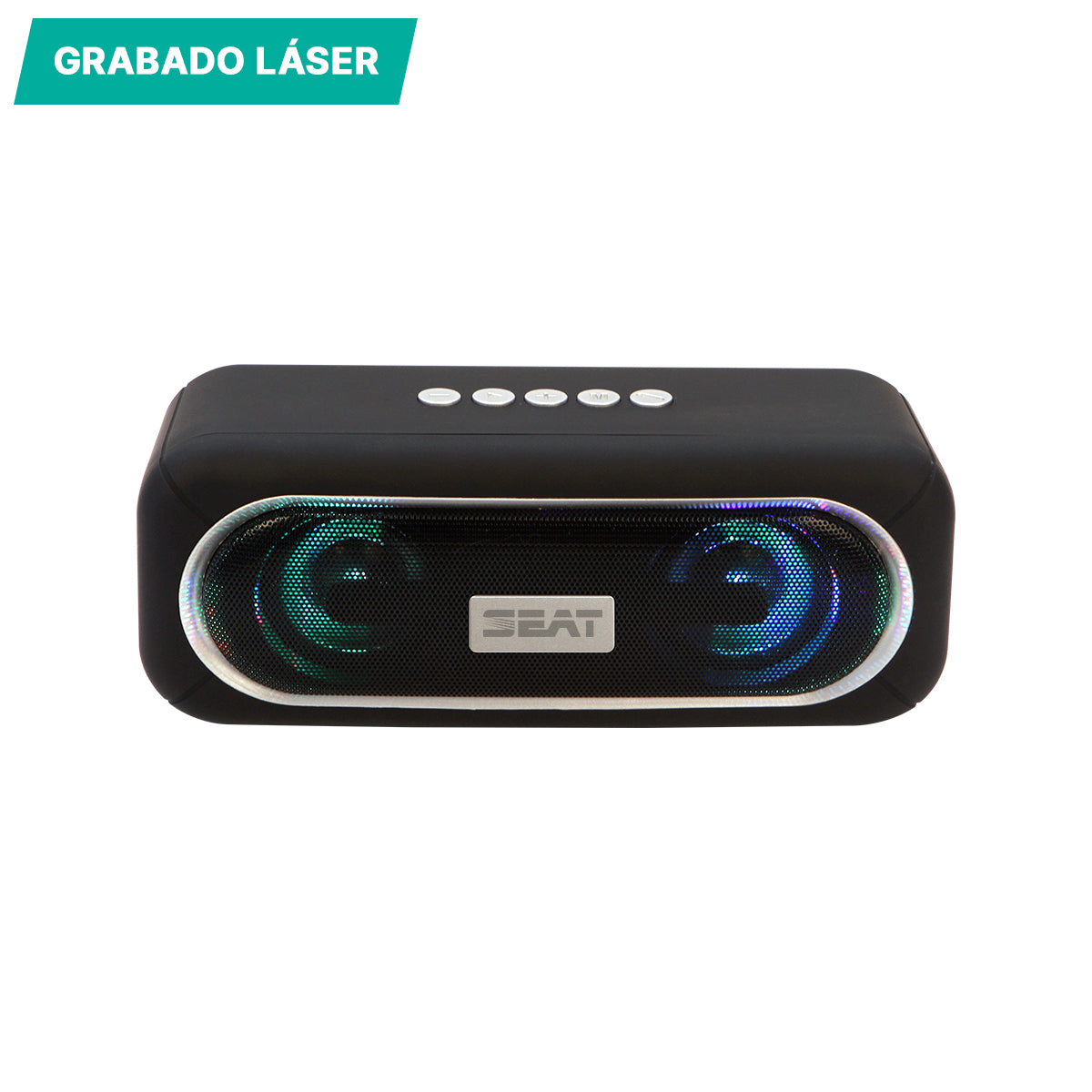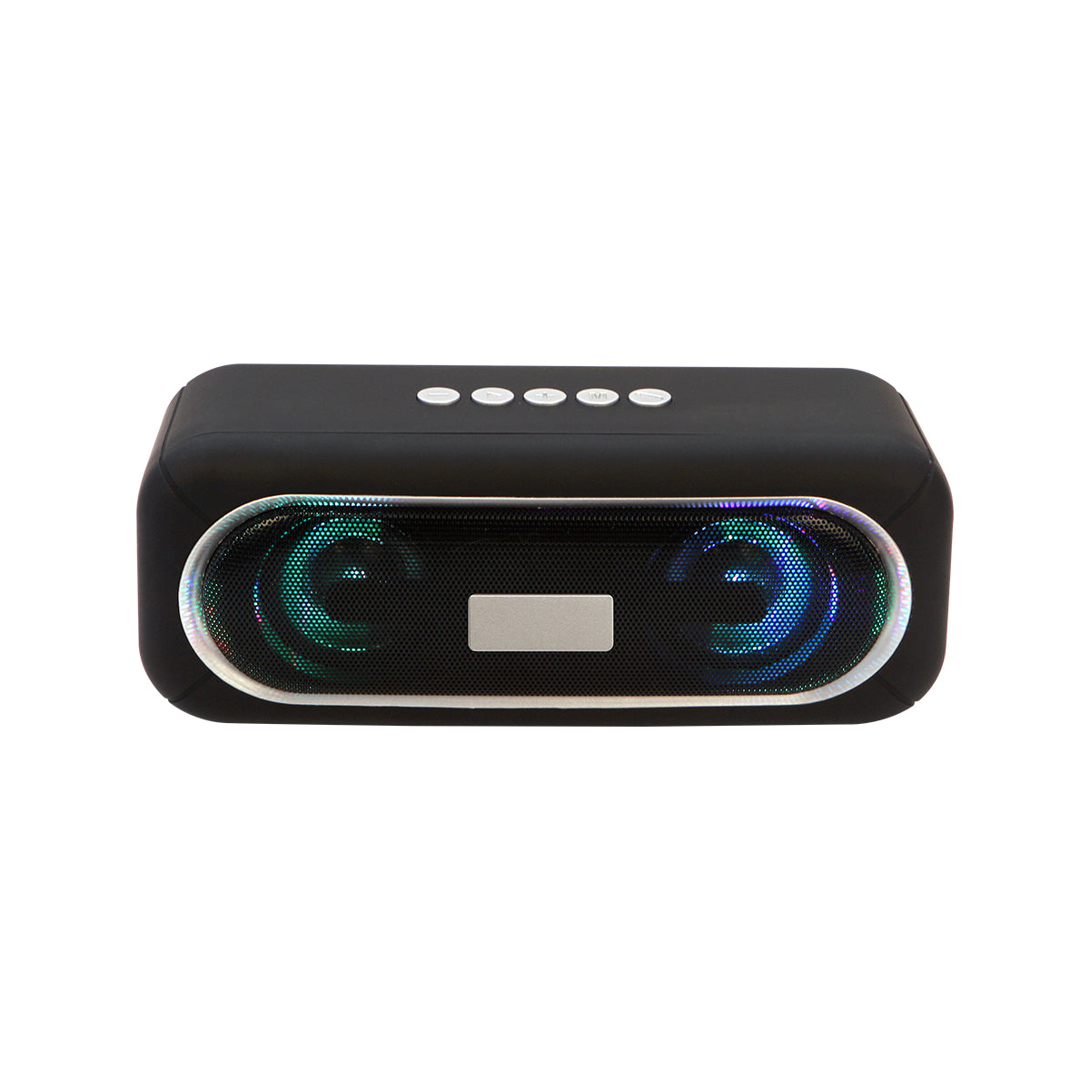 bocina con conexión de sonido sin cables fabricada en plástico, con radio fm, con 2 altavoces, 6w de potencia, entrada para usb, con función de manos libres, batería integrada de iones de litio con capacidad de 1,200 mah, cable de audio de 3,5 a 3,5 mm y ranura para tarjeta tf. incluye cable de carga usb a micro usb y caja de cartón individual.