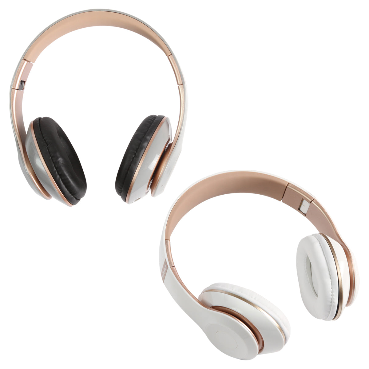 audífonos con conexión de sonido sin cables tipo diadema, con radio fm y entrada para tarjeta tf, fabricados en plástico abs. incluye cable auxiliar y cable de carga usb. incluye caja de cartón individual. tecnología inalámbrica y fácil emparejamiento.