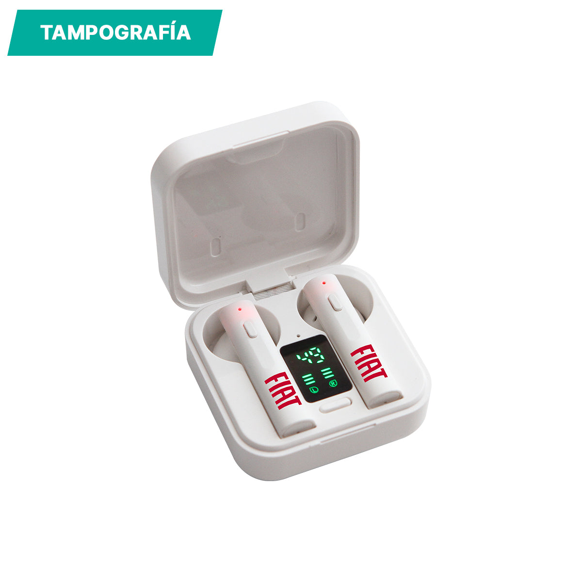 audífonos con conexión de sonido sin cables fabricados en plástico abs con función touch. el estuche puede cargar a través de cable usb o paneles solares, cuenta con pantalla en la parte interior donde se muestra el nivel de batería de los audífonos. reproduce música durante 2.5 horas continuas. incluye cable usb para carga y caja de cartón individual.