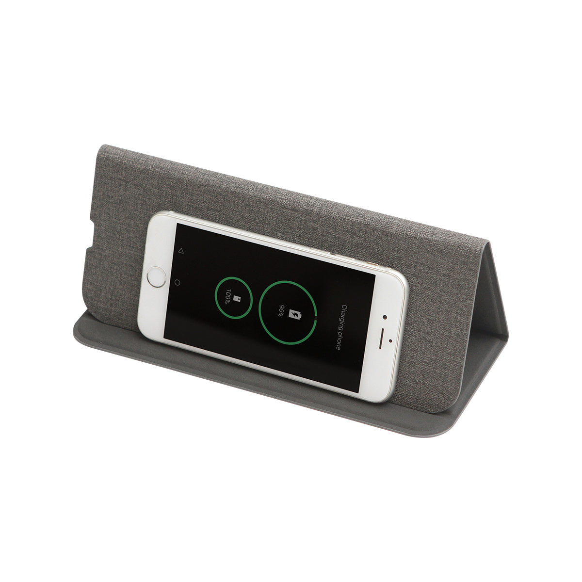 mouse pad plegable con diseño soporte para celular y cargador inalámbrico, acabado suave. carga a través de cable usb (incluido). incluye caja de cartón individual.