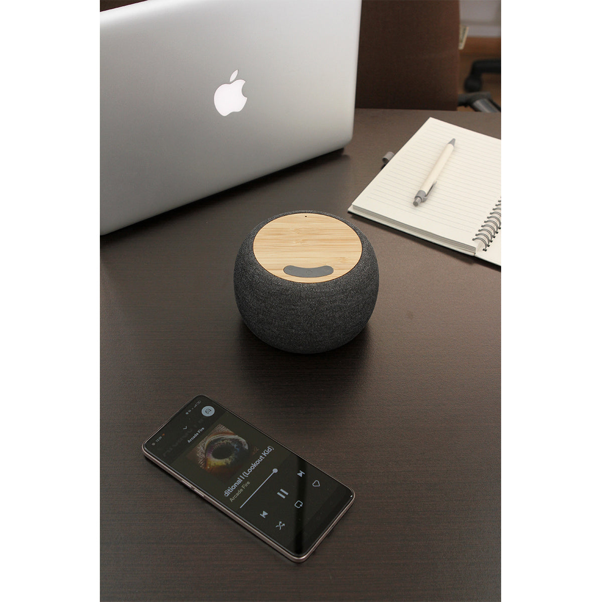 bocina con conexión de sonido sin cables, forrada en tela la cual proporciona una protección adicional contra golpes y arañazos, la parte superior de la bocina está hecha de bambú que es conocido por su durabilidad y resistencia, una de las características destacadas de la bocina shamal es su capacidad de carga inalámbrica para dispositivos electrónicos, la bocina carga utilizando el cable usb el cual ya esta incluido. incluye caja de cartón individual.