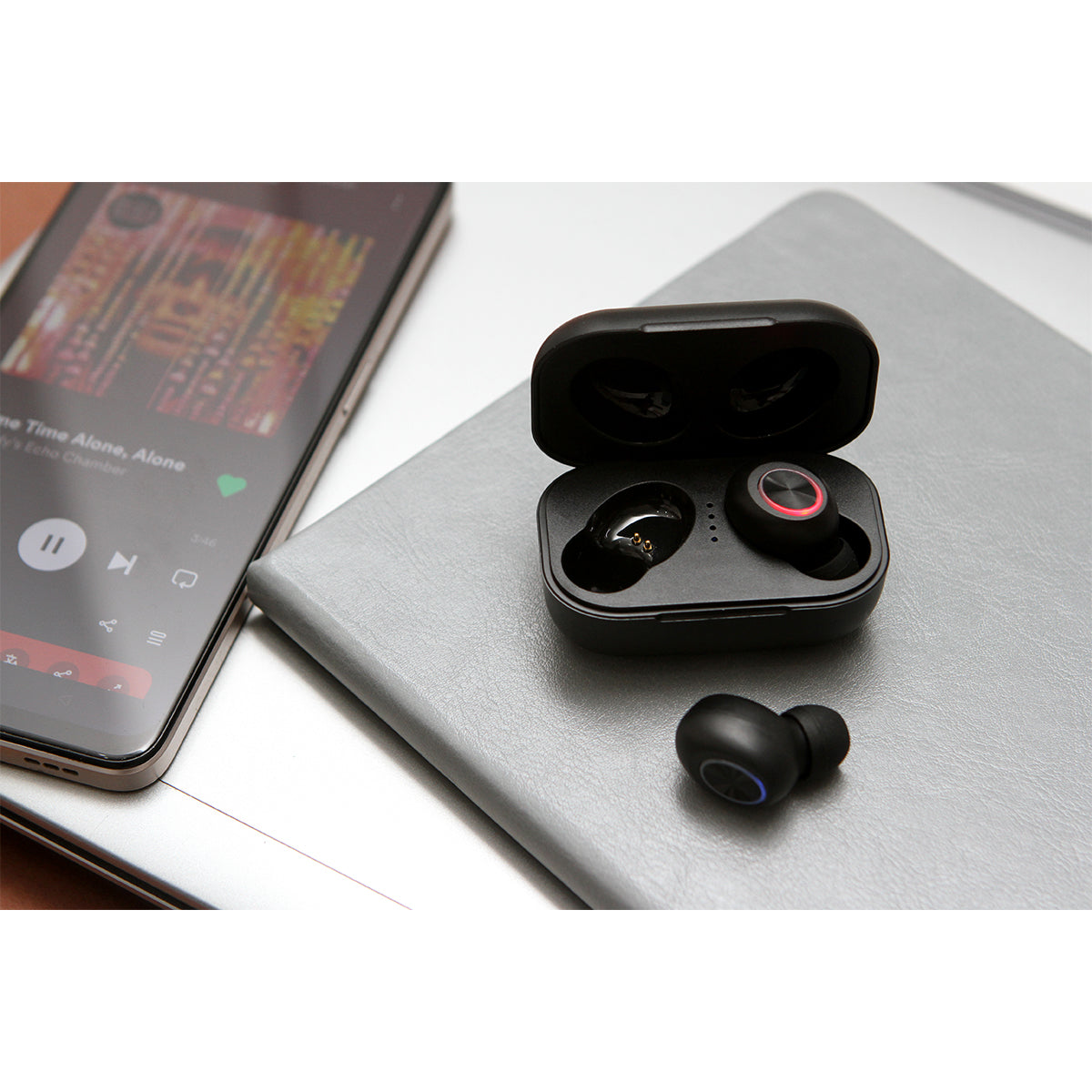 audífonos con conexión de sonido sin cables, fabricados en plástico abs acabado mate, con estuche de carga rectangular y cable de carga usb, ofrecen comodidad, calidad de sonido y conveniencia en un paquete compacto.