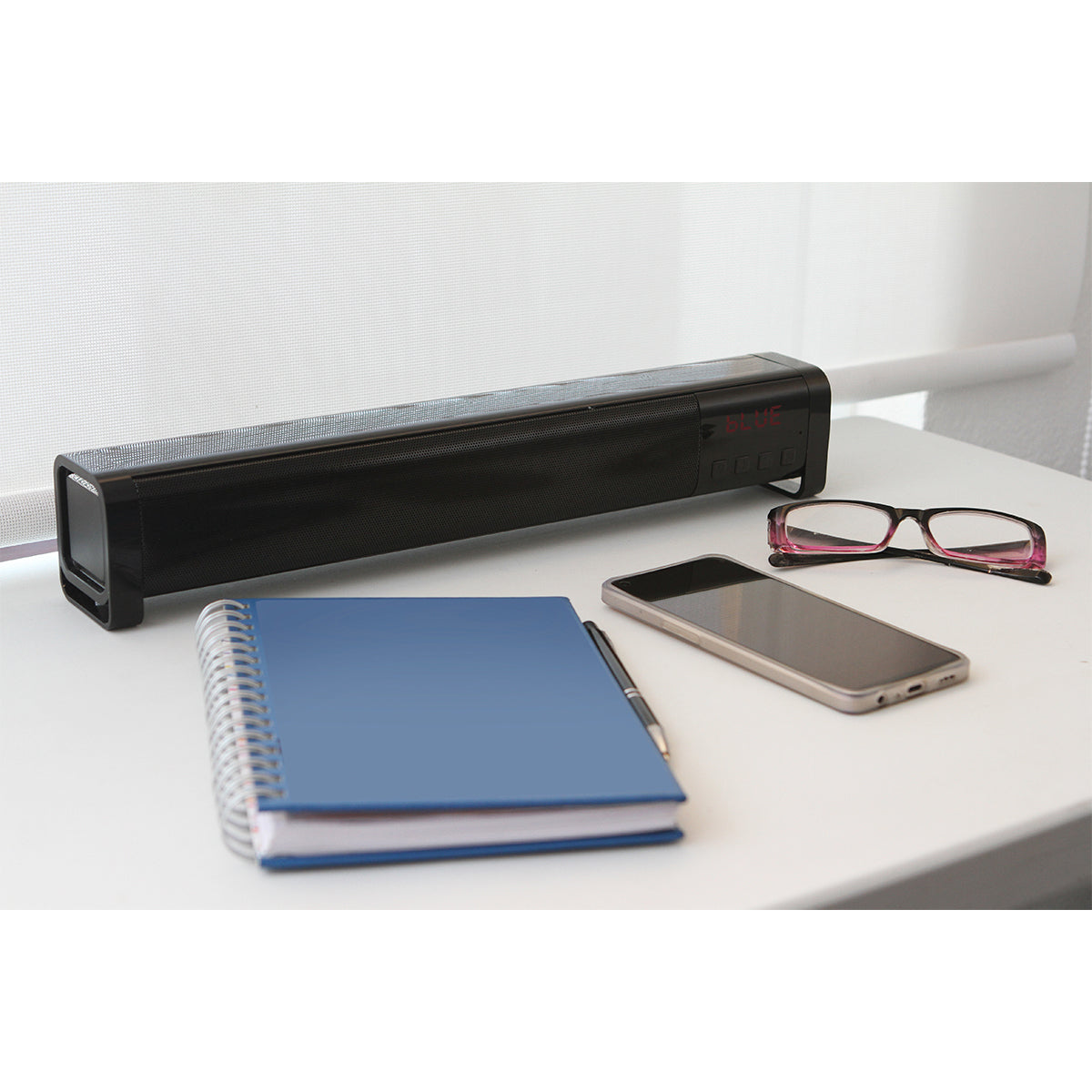 bocina con conexión de sonido sin cables, con radio y reloj despertador, con pantalla en una esquina de la bocina, cuenta con ranura para tarjeta tf y entrada para memoria usb. carga a través de cable usb que va incluido. su diseño moderno y funcional lo convierte en un regalo ideal para ti mismo o para alguien especial que aprecie la comodidad y la innovación en la vida diaria. incluye caja de cartón individual.