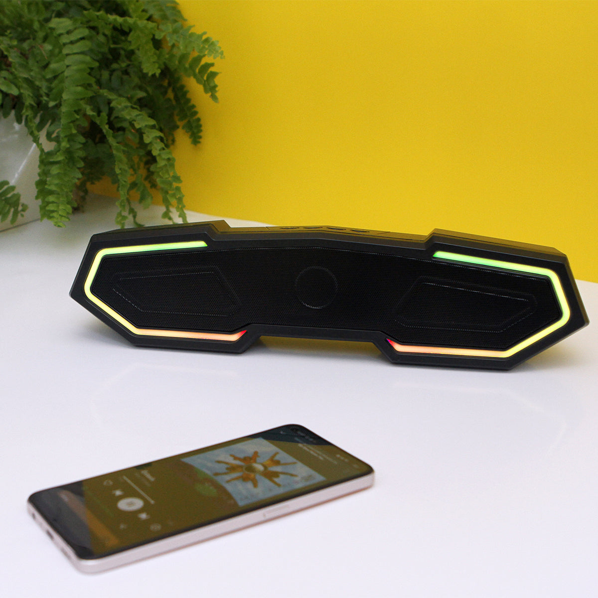 bocina con conexión de sonido sin cables, 4 botónes en la parte superior para controlar el volumen de la música o pasar a otra canción, con radio y luz led (la cual puede cambiar de color), con ranura para tarjeta tf y entrada para memoria usb ( el cual ya viene incluido). con caja de cartón individual.